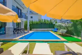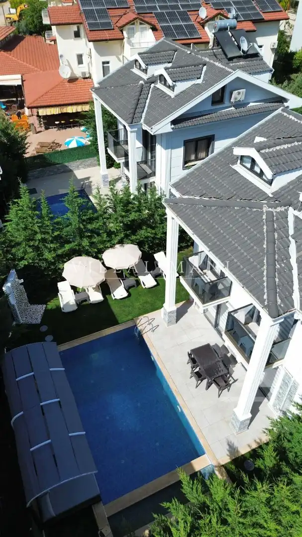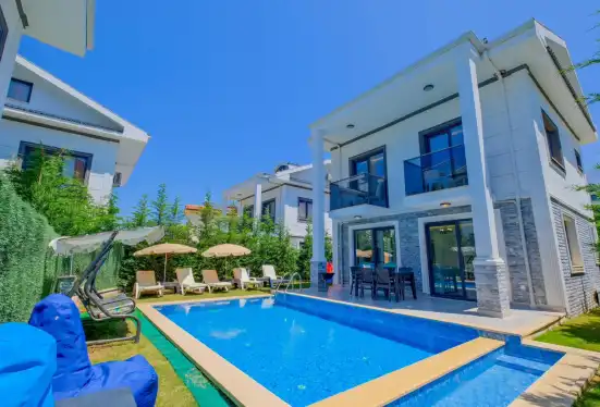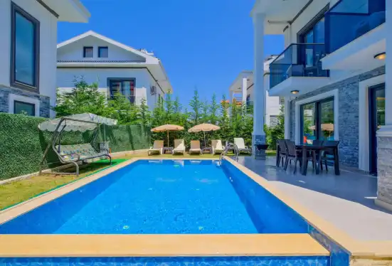 Fethiye'nin muhteşem doğasında şehir kargaşasından uzak bir tatil geçirmenizi sağlayacak olan villamızın havuz ve bahçe kısmında kapasiteye uygun oturma grubu, şezlong takımı, barbekü alanı, çocuk oyun alanı, bahçe salıncak mevcuttur. Ayrıca havuz terasına açılan, her ayrıntısı özenle tasarlanmış ferah bir oturma odası ve tam donanımlı açık mutfağı bulunmaktadır.