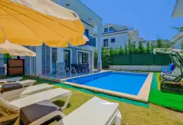 Fethiye Hisarönü'nde bulunan villamız 4 yatak odası ile 8 kişilik konaklama kapasitesi sunmaktadır. Özel havuz alanına sahip ayrıcalıklı bir villa tatili için tüm donanım ve konfor detaylarının düşünüldüğü villa kalabalık arkadaş grupları ve geniş aileye sahip misafirlerimizin tercihleri arasındadır.