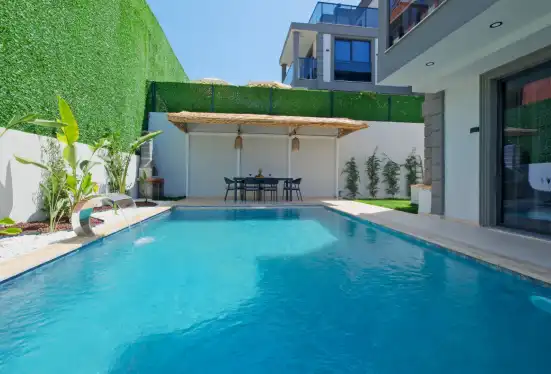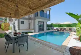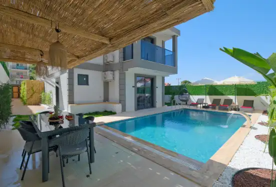Fethiye'nin muhteşem doğasında şehir kargaşasından uzak bir tatil geçirmenizi sağlayacak olan villamızın havuz ve bahçe kısmında kapasiteye uygun oturma grubu, şezlong takımı, barbekü alanı mevcuttur. Havuz terasına açılan, her ayrıntısı özenle tasarlanmış ferah bir oturma odası ve tam donanımlı açık mutfağı bulunmaktadır.