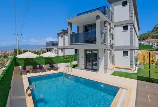 Fethiye'nin muhteşem doğasında şehir kargaşasından uzak bir tatil geçirmenizi sağlayacak olan villamızın havuz ve bahçe kısmında kapasiteye uygun oturma grubu, şezlong takımı, barbekü alanı mevcuttur. Havuz terasına açılan, her ayrıntısı özenle tasarlanmış ferah bir oturma odası ve tam donanımlı açık mutfağı bulunmaktadır.