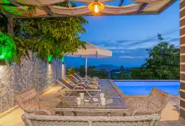 Kalkan'ın muhteşem doğasında şehir kargaşasından uzak bir tatil geçirmenizi sağlayacak olan villamızın havuz ve bahçe kısmında kapasiteye uygun oturma grubu, şezlong takımı, barbekü alanı mevcuttur. Ayrıca havuz terasına açılan, her ayrıntısı özenle tasarlanmış ferah bir oturma odası ve tam donanımlı açık mutfağı bulunmaktadır.