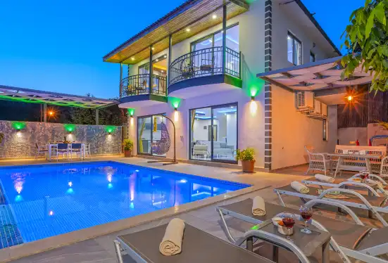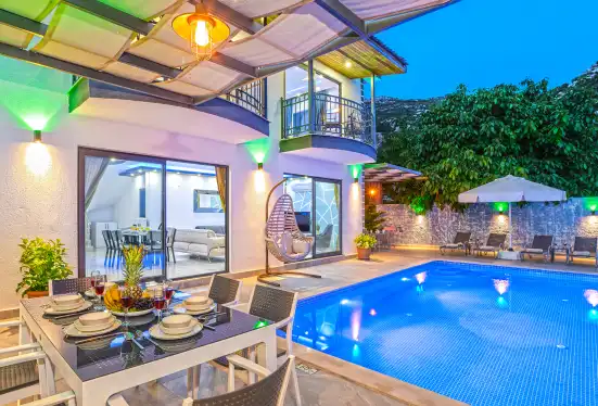 Kalkan’ın eşsiz doğa manzarası eşliğinde olan bu villa, özel yüzme havuzu ve şık iç tasarımıyla unutulmaz bir tatil deneyimi sunuyor. Hem iç hem de dış mekanlarda sunulan konfor ve lüks, rahatlatıcı bir kaçamak için mükemmel bir seçenektir.