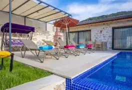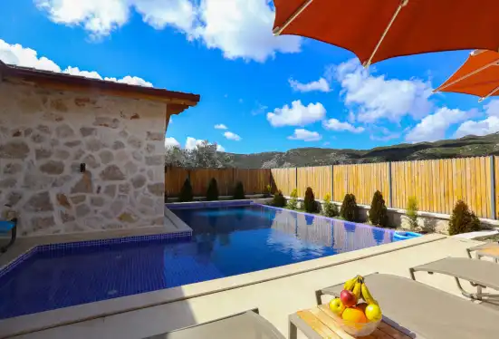 Antalya Kalkan'da yer alan villamız Sarıbelen mevkinde bulunmaktadır. Villamız 2 yatak odası ile 4 kişilik konaklama kapasitesi sunmaktadır. Korunaklı havuz alanına sahip ayrıcalıklı bir villa tatili için tüm donanım ve konfor detaylarının düşünüldüğü villa balayı ve çekirdek aileye sahip misafirlerimizin tercihleri arasındadır.