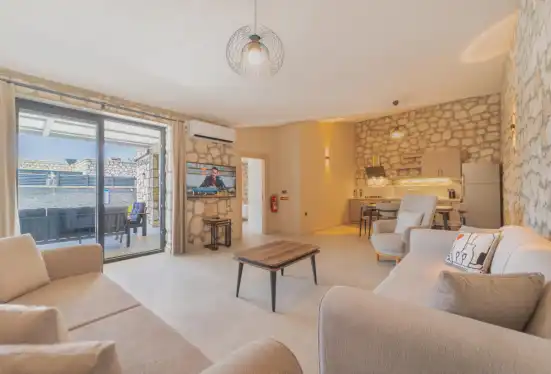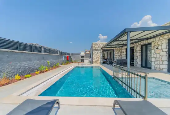 Not: Bölgede aynı özelliklere sahip toplam 8 villa bulunmaktadır. Her villa özel havuzlu olarak hizmet vermektedir. Aynı iç ve dış dekorasyona sahip 8 villamız için ortak görseller kullanılmıştır.