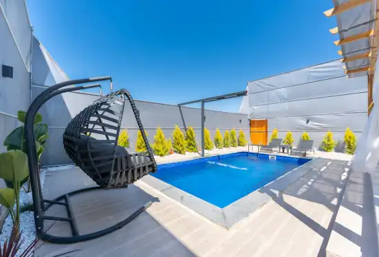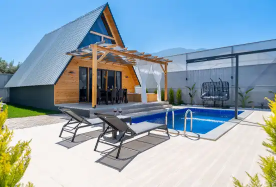 Fethiye'nin muhteşem doğasında şehir kargaşasından uzak bir tatil geçirmenizi sağlayacak olan villamızın havuz ve bahçe kısmında kapasiteye uygun oturma grubu, şezlong takımı, barbekü alanı; havuz terasına açılan, her ayrıntısı özenle tasarlanmış ferah bir oturma odası ve tam donanımlı açık mutfağı bulunmaktadır.