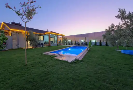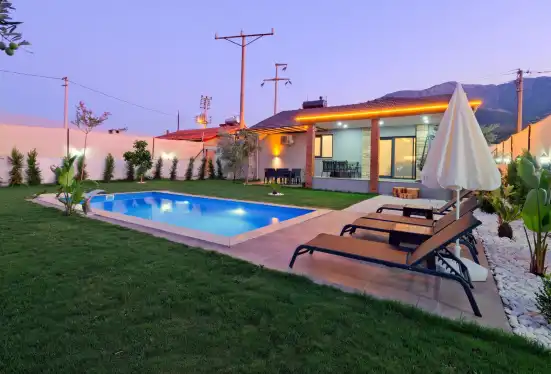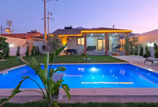 Fethiye'nin muhteşem doğasında şehir kargaşasından uzak bir tatil geçirmenizi sağlayacak olan villamızın havuz ve bahçe kısmında kapasiteye uygun oturma grubu, şezlong takımı, barbekü alanı çocuk oyun parkı mevcuttur. Ayrıca havuz terasına açılan, her ayrıntısı özenle tasarlanmış ferah bir oturma odası ve tam donanımlı açık mutfağı bulunmaktadır.