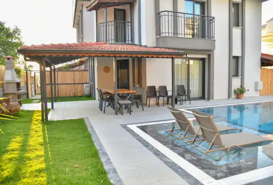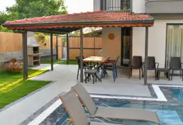 Fethiye'nin muhteşem doğasında şehir kargaşasından uzak bir tatil geçirmenizi sağlayacak olan villamızın havuz ve bahçe kısmında kapasiteye uygun oturma grubu, şezlong takımı, barbekü alanı mevcuttur. Ayrıca havuz terasına açılan, her ayrıntısı özenle tasarlanmış ferah bir oturma odası ve tam donanımlı açık mutfağı bulunmaktadır.