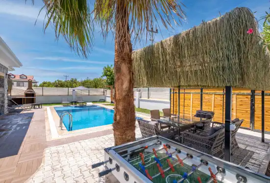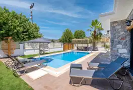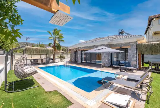 Fethiye'nin muhteşem doğasında şehir kargaşasından uzak bir tatil geçirmenizi sağlayacak olan villamızın havuz ve bahçe kısmında kapasiteye uygun oturma grubu, şezlong takımı, barbekü alanı, langırt; havuz terasına açılan, her ayrıntısı özenle tasarlanmış ferah bir oturma odası ve tam donanımlı açık mutfağı bulunmaktadır.