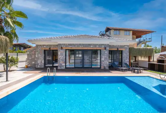 Fethiye Çiftlik' te bulunan villamız 2 yatak odası ile 4 kişilik konaklama kapasitesi sunmaktadır. Özel havuz alanına sahip ayrıcalıklı bir villa tatili için tüm donanım ve konfor detaylarının düşünüldüğü villa balayı ve çekirdek aileye sahip misafirlerimizin tercihleri arasındadır.