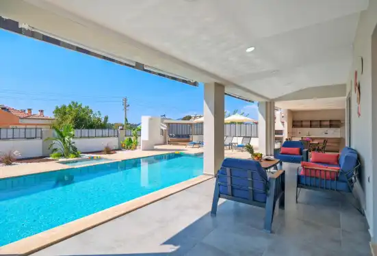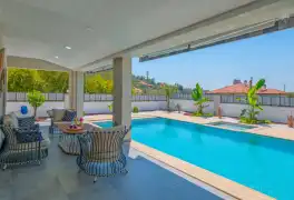 Fethiye'nin muhteşem doğasında şehir kargaşasından uzak bir tatil geçirmenizi sağlayacak olan villamızın havuz ve bahçe kısmında kapasiteye uygun oturma grubu, şezlong takımı, barbekü alanı; havuz terasına açılan, her ayrıntısı özenle tasarlanmış ferah bir oturma odası ve tam donanımlı açık mutfağı bulunmaktadır.