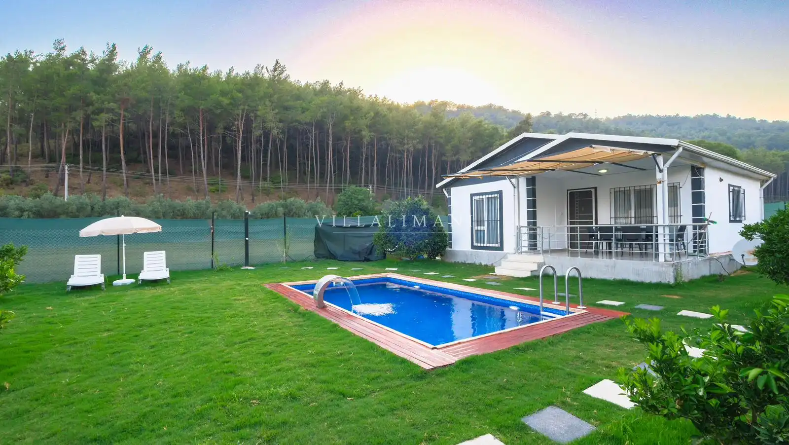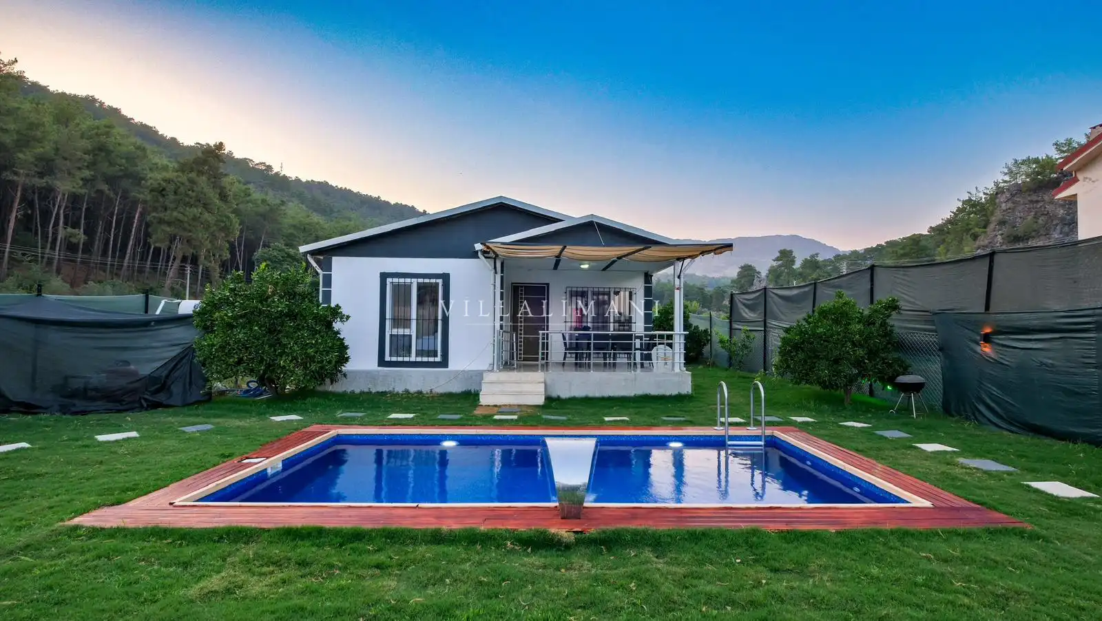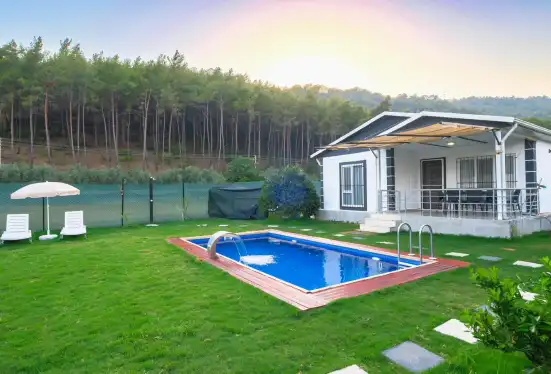 Muhteşem doğa içerisinde, şehir kargaşasından uzak bir tatil geçirmenizi sağlayacak olan villamızın havuz ve bahçe kısmında kapasiteye uygun oturma grubu, şezlong takımı, barbekü alanı mevcuttur. Ayrıca havuz terasına açılan, her ayrıntısı özenle tasarlanmış ferah bir oturma odası ve tam donanımlı açık mutfağı bulunmaktadır.