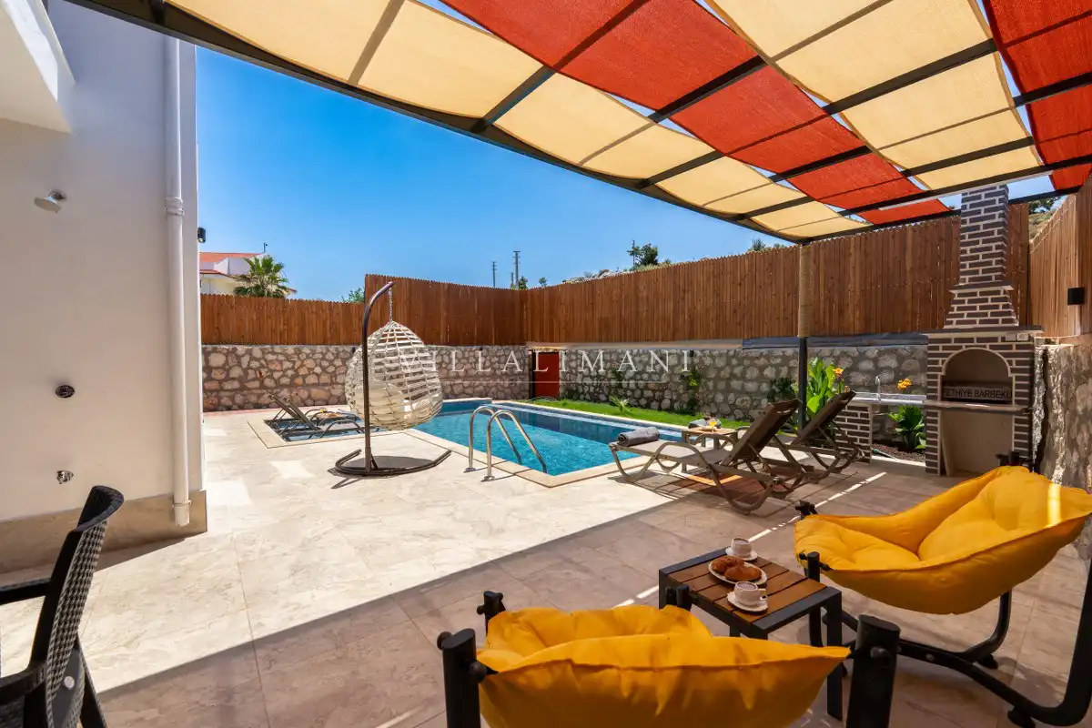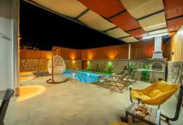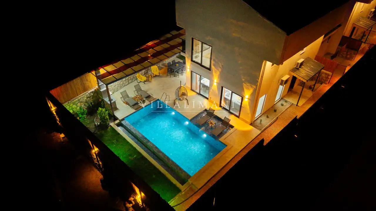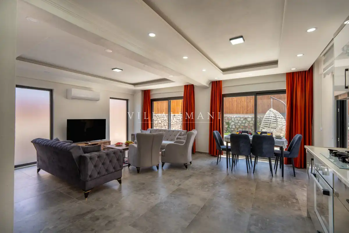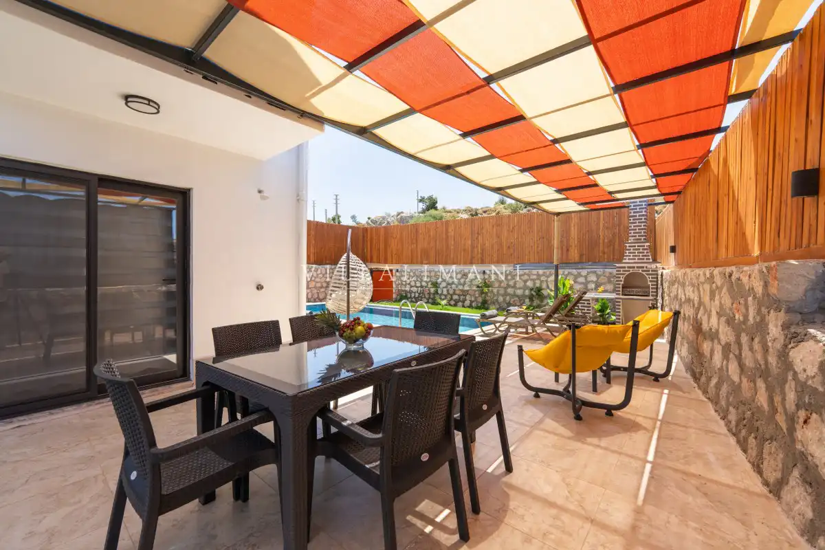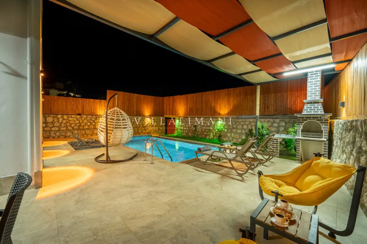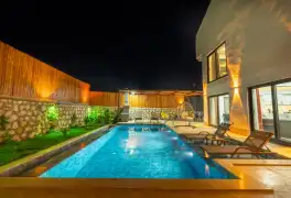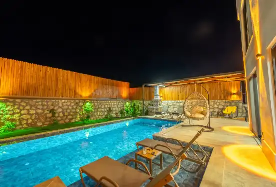Muhteşem doğa içerisinde, şehir kargaşasından uzak bir tatil geçirmenizi sağlayacak olan villamızın havuz ve bahçe kısmında kapasiteye uygun oturma grubu, şezlong takımı, barbekü alanı mevcuttur. Ayrıca havuz terasına açılan, her ayrıntısı özenle tasarlanmış ferah bir oturma odası ve tam donanımlı açık mutfağı bulunmaktadır.