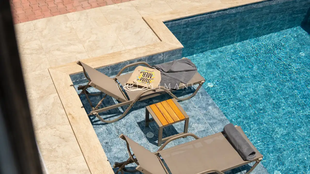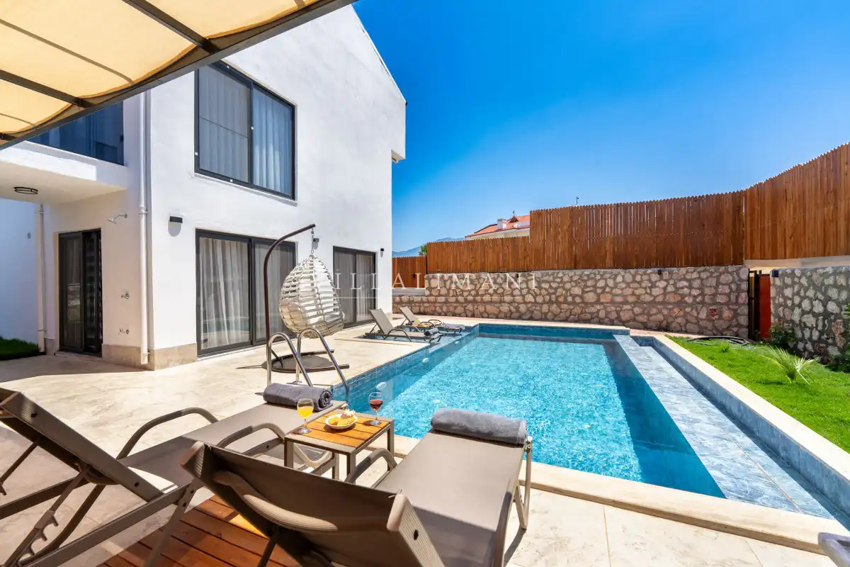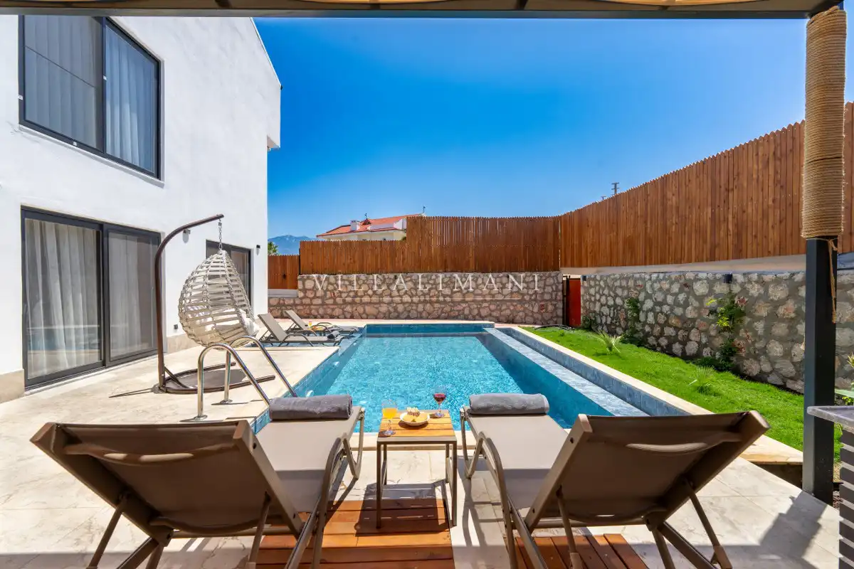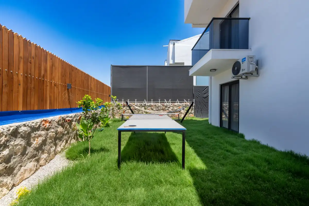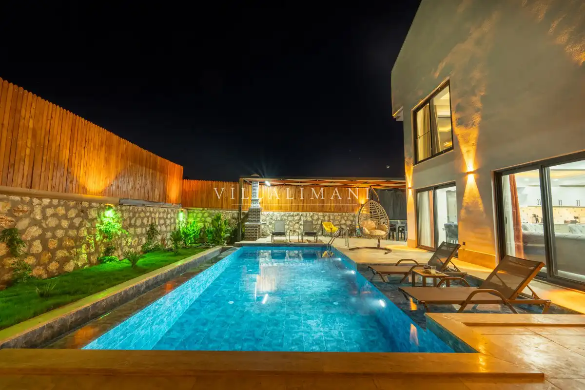 Muhteşem doğa içerisinde, şehir kargaşasından uzak bir tatil geçirmenizi sağlayacak olan villamızın havuz ve bahçe kısmında kapasiteye uygun oturma grubu, şezlong takımı, barbekü alanı mevcuttur. Ayrıca havuz terasına açılan, her ayrıntısı özenle tasarlanmış ferah bir oturma odası ve tam donanımlı açık mutfağı bulunmaktadır.