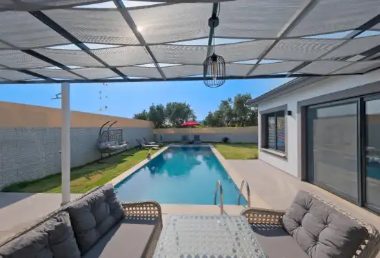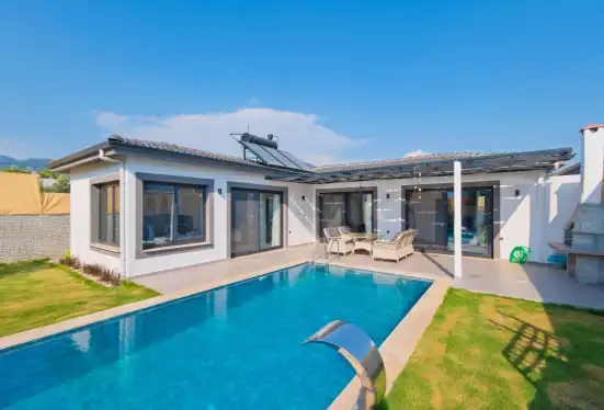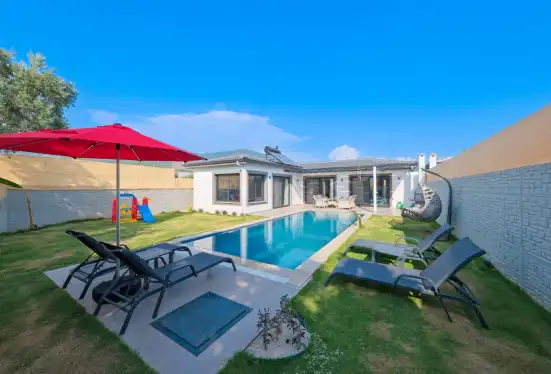 Fethiye Çamköy mevkiinde bulunan villa 2 yatak odasıyla 5 kişi konaklama kapasitesine sahiptir. Korunaklı havuz bahçe alanına sahip olup, balayı çiftleri ve çekirdek aileler için idealdir.