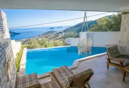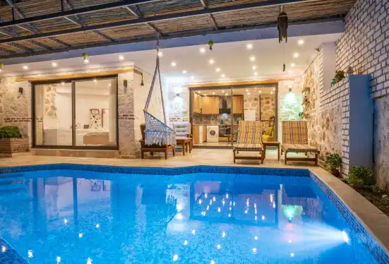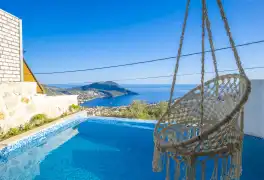Kalkan'ın muhteşem doğasında şehir kargaşasından uzak bir tatil geçirmenizi sağlayacak olan villamızın havuz ve bahçe kısmında kapasiteye uygun oturma grubu, şezlong takımı, barbekü alanı ve salıncak; havuz terasına açılan, her ayrıntısı özenle tasarlanmış ferah bir oturma odası ve tam donanımlı açık mutfağı bulunmaktadır.