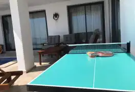 Kalkan'ın muhteşem doğasında şehir kargaşasından uzak bir tatil geçirmenizi sağlayacak olan villamızın havuz ve bahçe kısmında kapasiteye uygun oturma grubu, şezlong takımı, barbekü alanı ve salıncak; havuz terasına açılan, her ayrıntısı özenle tasarlanmış ferah bir oturma odası ve tam donanımlı açık mutfağı bulunmaktadır.