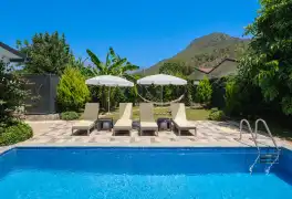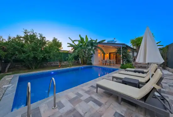 Fethiye'nin muhteşem doğasında şehir kargaşasından uzak bir tatil geçirmenizi sağlayacak olan villamızın havuz ve bahçe kısmında kapasiteye uygun oturma grubu, şezlong takımı, barbekü alanı mevcuttur. Ayrıca havuz terasına açılan, her ayrıntısı özenle tasarlanmış ferah bir oturma odası ve tam donanımlı açık mutfağı bulunmaktadır.
