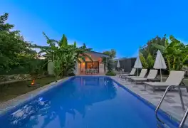 Fethiye Kayaköy’de bulunan villamız 2 yatak odası ile 4 kişilik konaklama kapasitesi sunmaktadır. Korunaklı havuz alanına sahip ayrıcalıklı bir villa tatili için tüm donanım ve konfor detaylarının düşünüldüğü villa balayı çiftlerinin ve çekirdek aileye sahip misafirlerimizin tercihleri arasındadır.