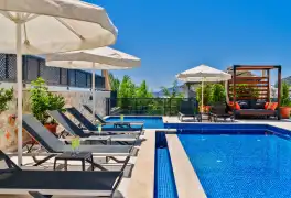 Doğanın ve denizin keyfini çıkararak huzurlu bir tatil geçirmek isteyen misafirlerimiz için ideal bir seçenek olan bu villa, lüks ve konforu bir arada sunmaktadır. Kalkan'ın eşsiz güzelliklerini keşfetmek, yakın mesafede yer alan sayısız koylarını ziyaret etmek ve unutulmaz anılar biriktirmek için ideal bir konaklama seçeneğidir.