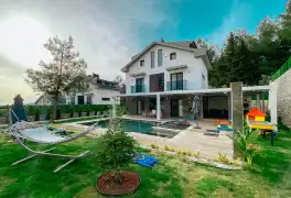 Fethiye'nin muhteşem doğasında şehir kargaşasından uzak bir tatil geçirmenizi sağlayacak olan villamızın havuz ve bahçe kısmında kapasiteye uygun oturma grubu, şezlong takımı, barbekü alanı, salıncak ,masa tenisi, langırt, .bilardo ; havuz terasına açılan, her ayrıntısı özenle tasarlanmış ferah bir oturma odası ve tam donanımlı açık mutfağı bulunmaktadır.