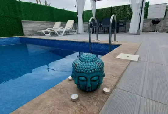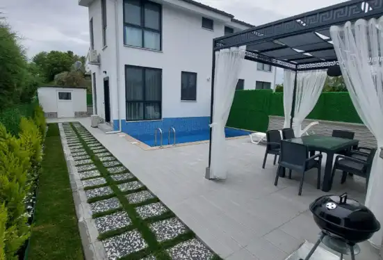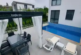 Muhteşem doğa içerisinde, şehir kargaşasından uzak bir tatil geçirmenizi sağlayacak olan villamızın havuz ve bahçe kısmında kapasiteye uygun oturma grubu, şezlong takımı, barbekü alanı mevcuttur. Ayrıca havuz terasına açılan, her ayrıntısı özenle tasarlanmış ferah bir oturma odası ve tam donanımlı açık mutfağı bulunmaktadır.