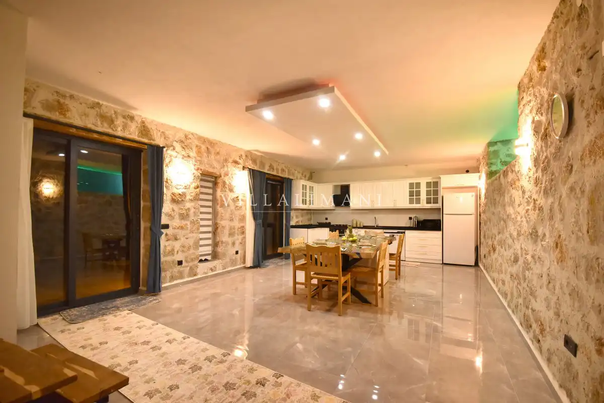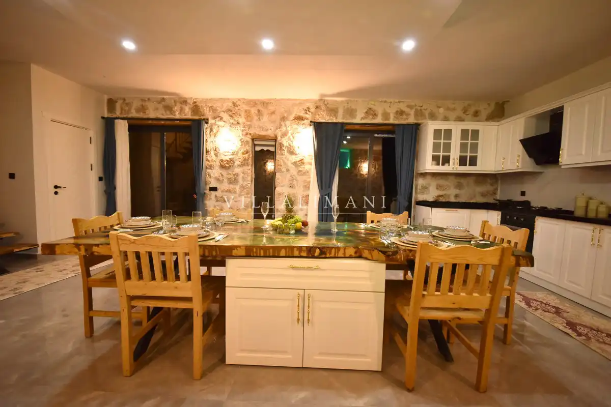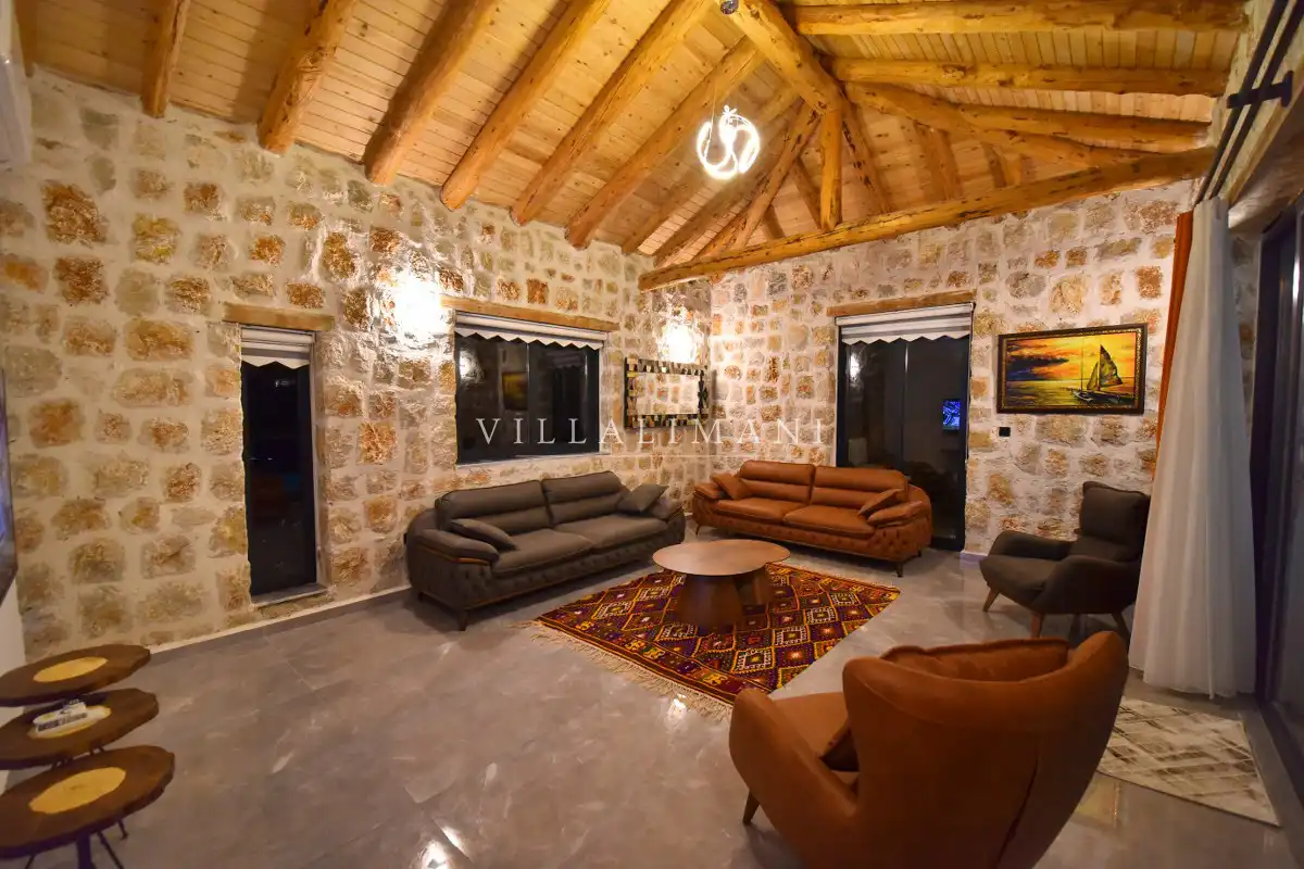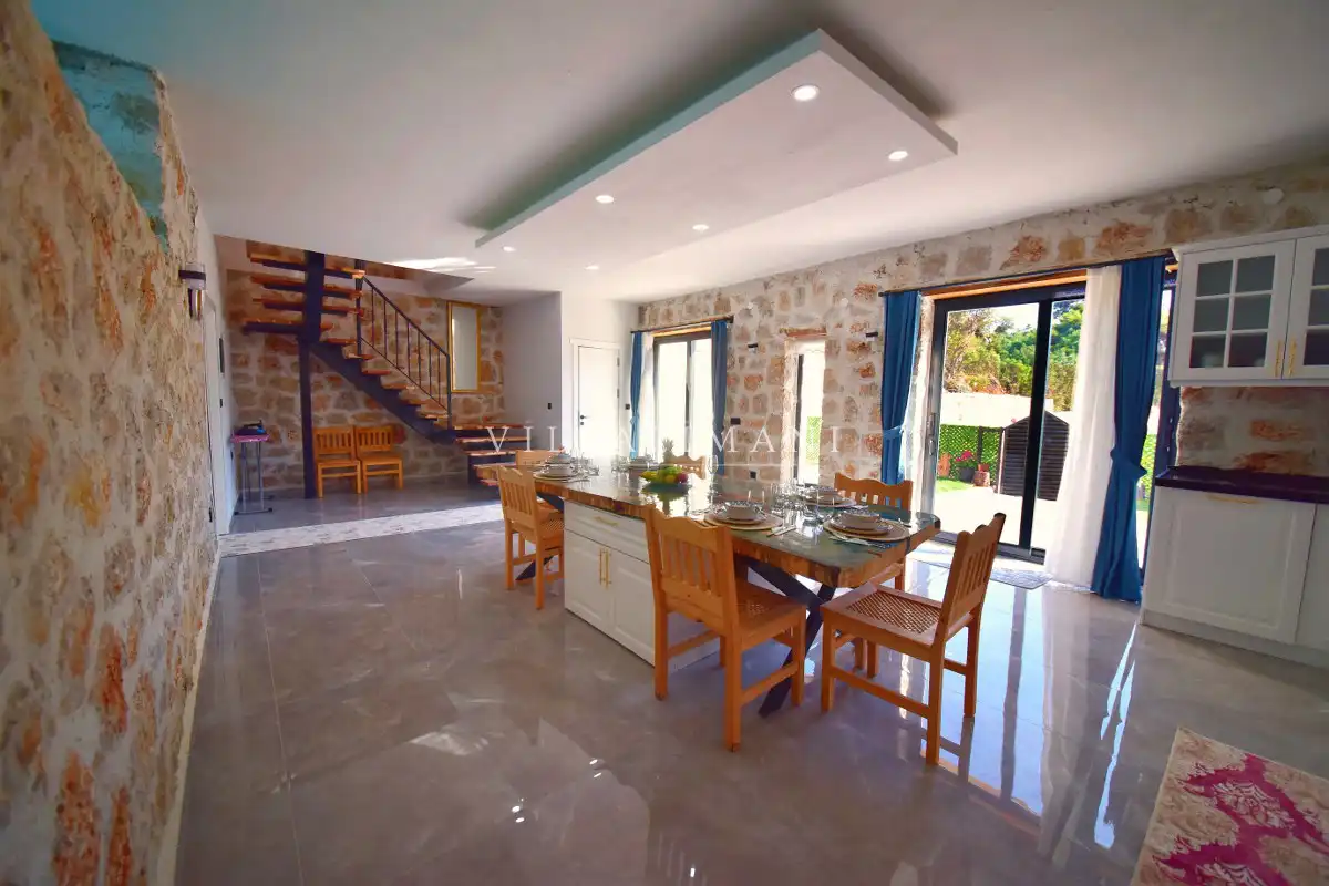 Muhteşem doğa içerisinde, şehir kargaşasından uzak bir tatil geçirmenizi sağlayacak olan villamızın havuz ve bahçe kısmında kapasiteye uygun oturma grubu, şezlong takımı, barbekü alanı mevcuttur. Ayrıca havuz terasına açılan, her ayrıntısı özenle tasarlanmış ferah bir oturma odası ve tam donanımlı açık mutfağı bulunmaktadır.