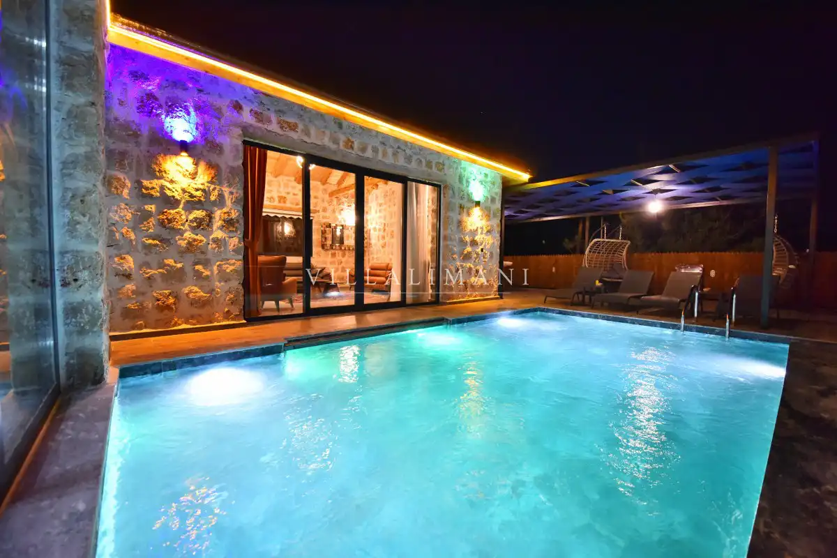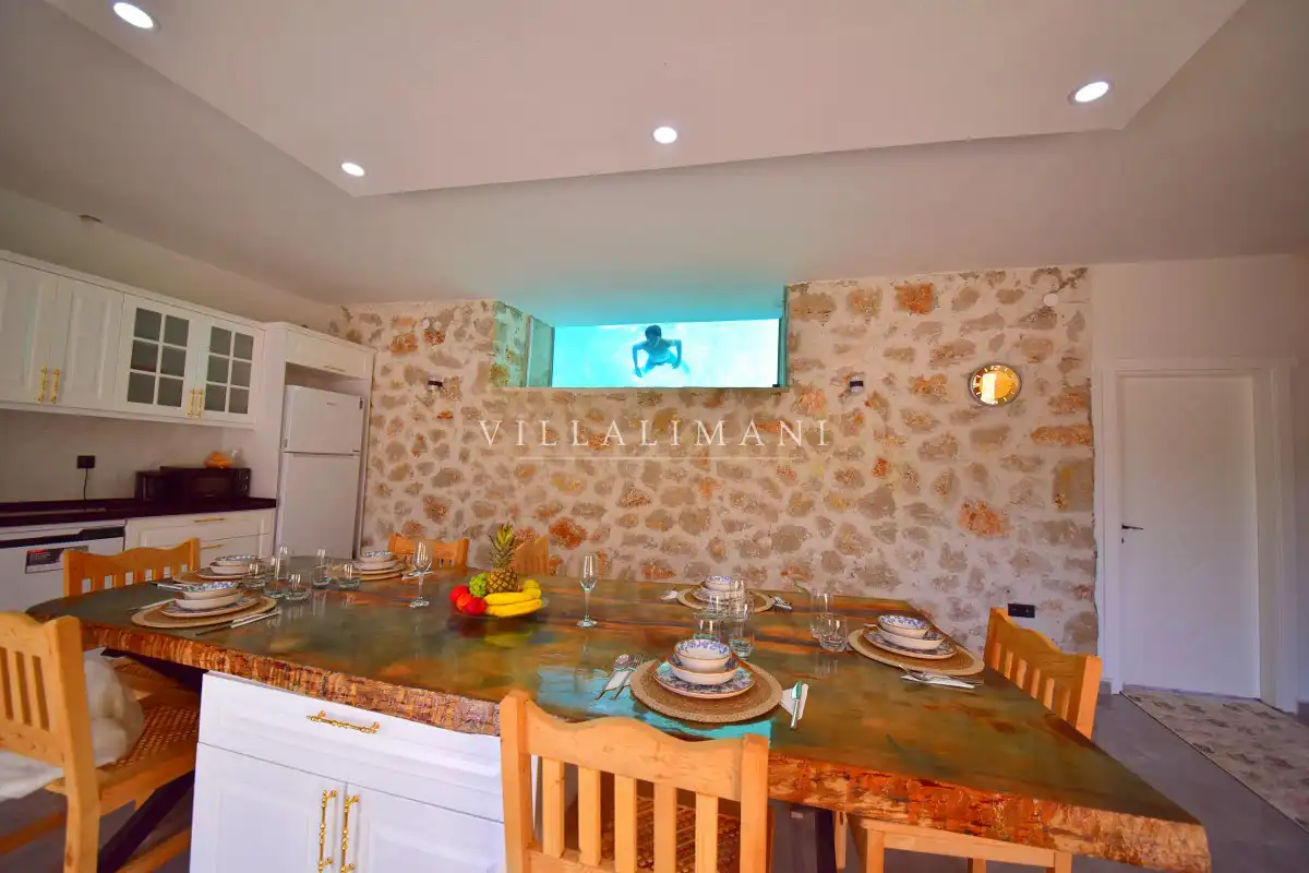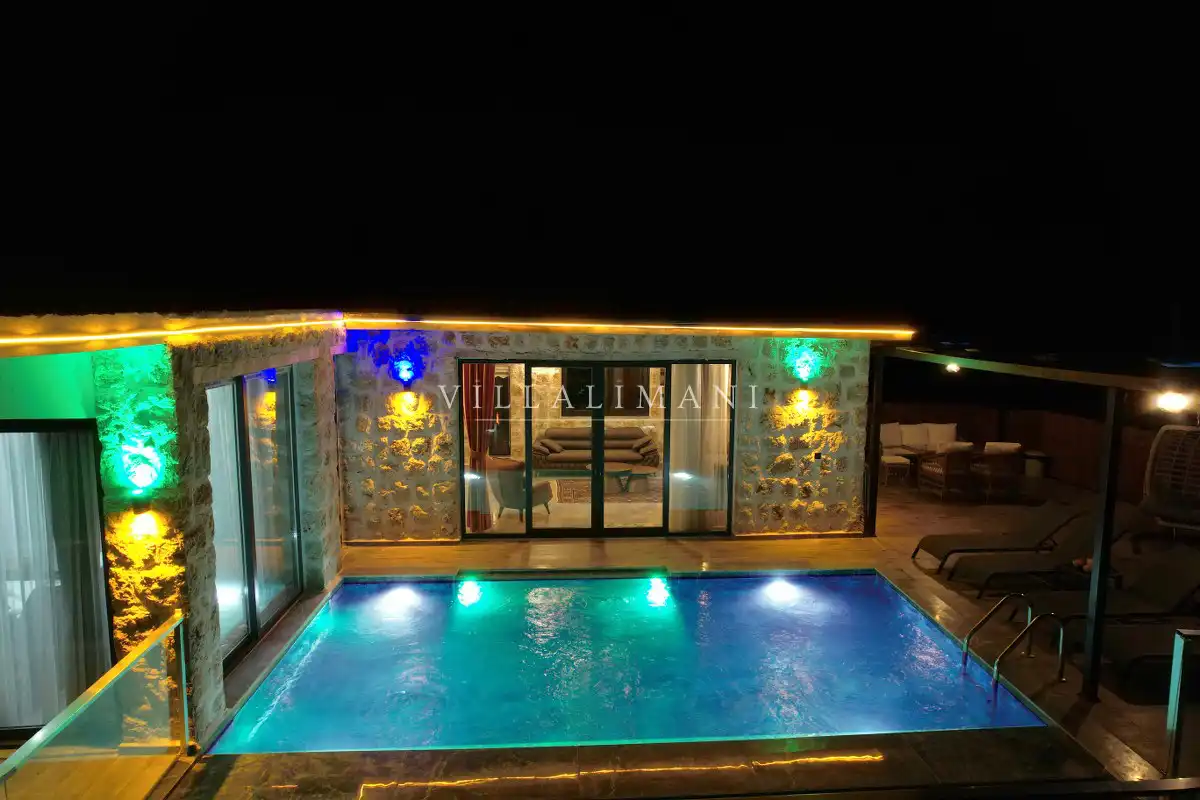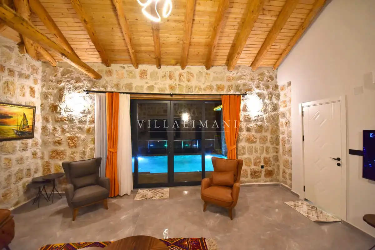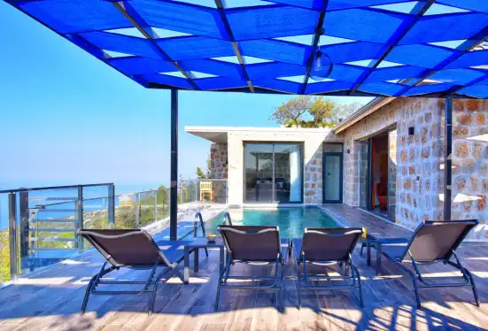 Muhteşem doğa içerisinde, şehir kargaşasından uzak bir tatil geçirmenizi sağlayacak olan villamızın havuz ve bahçe kısmında kapasiteye uygun oturma grubu, şezlong takımı, barbekü alanı mevcuttur. Ayrıca havuz terasına açılan, her ayrıntısı özenle tasarlanmış ferah bir oturma odası ve tam donanımlı açık mutfağı bulunmaktadır.
