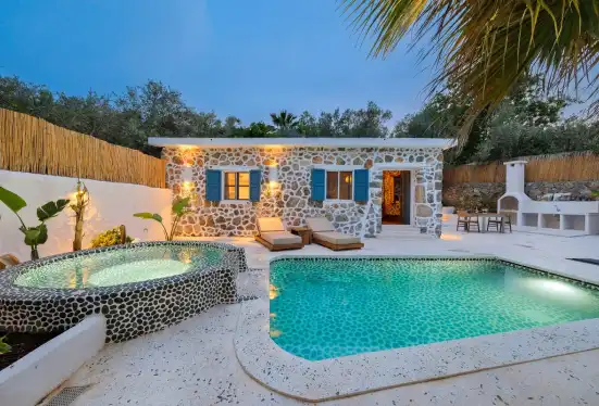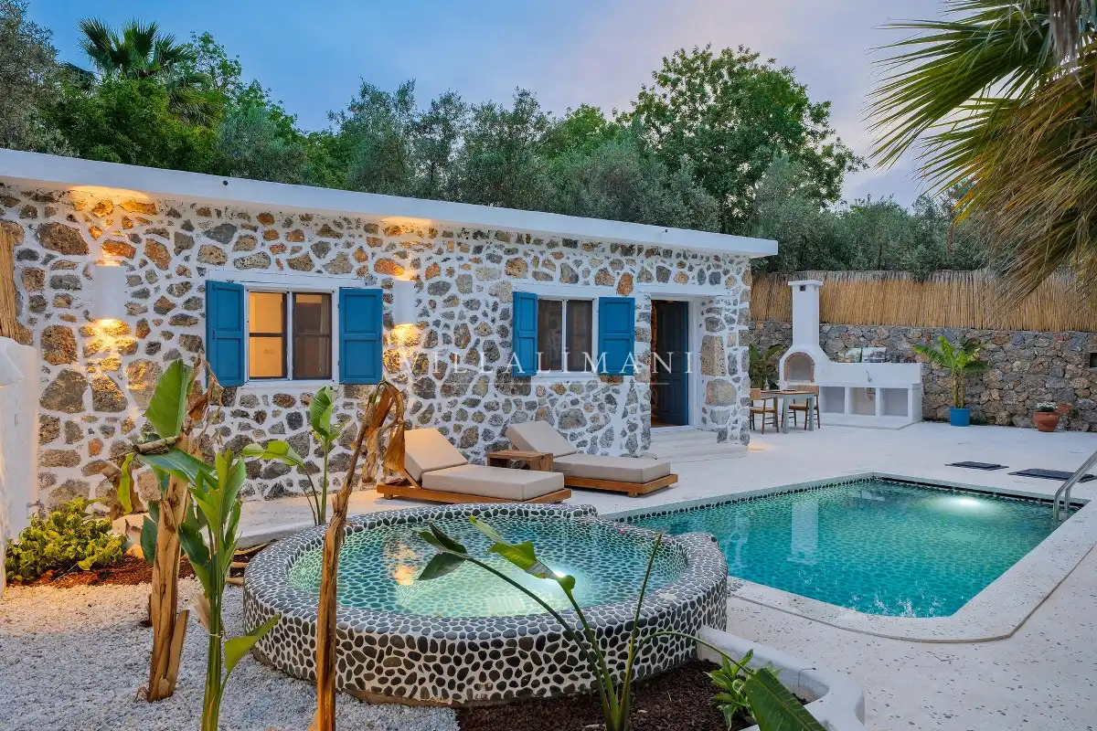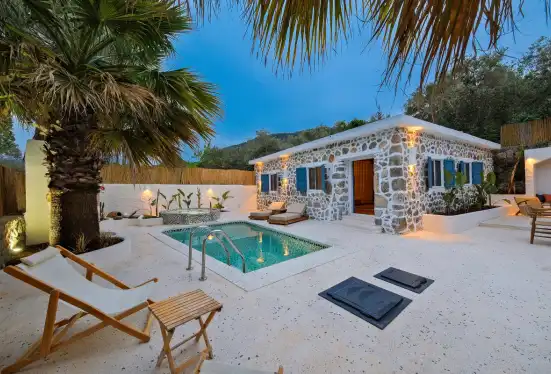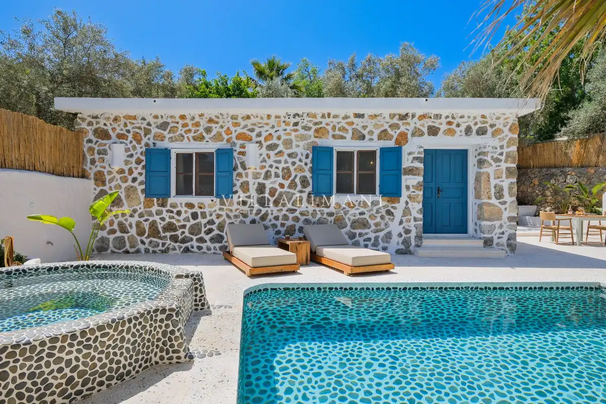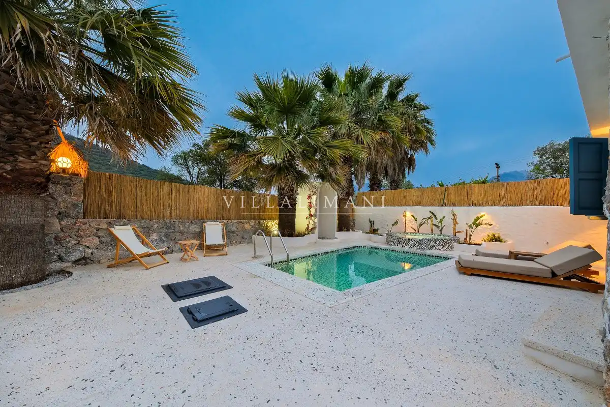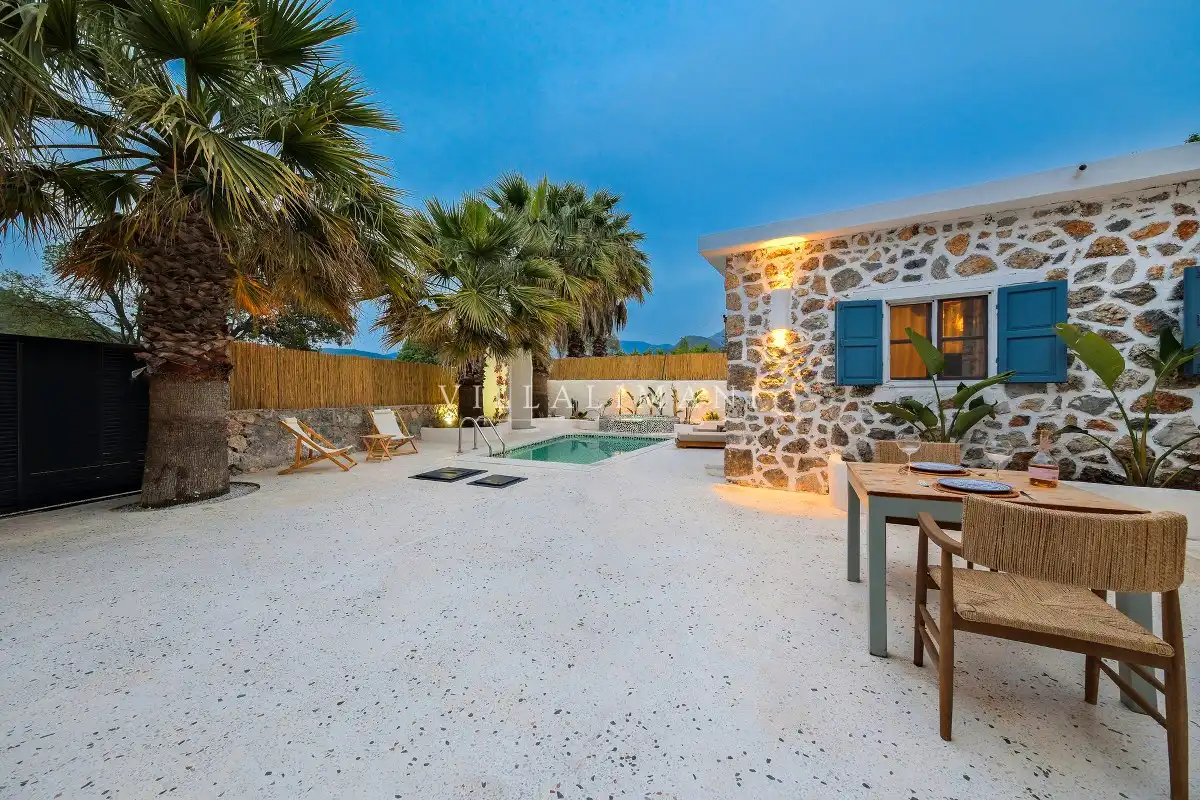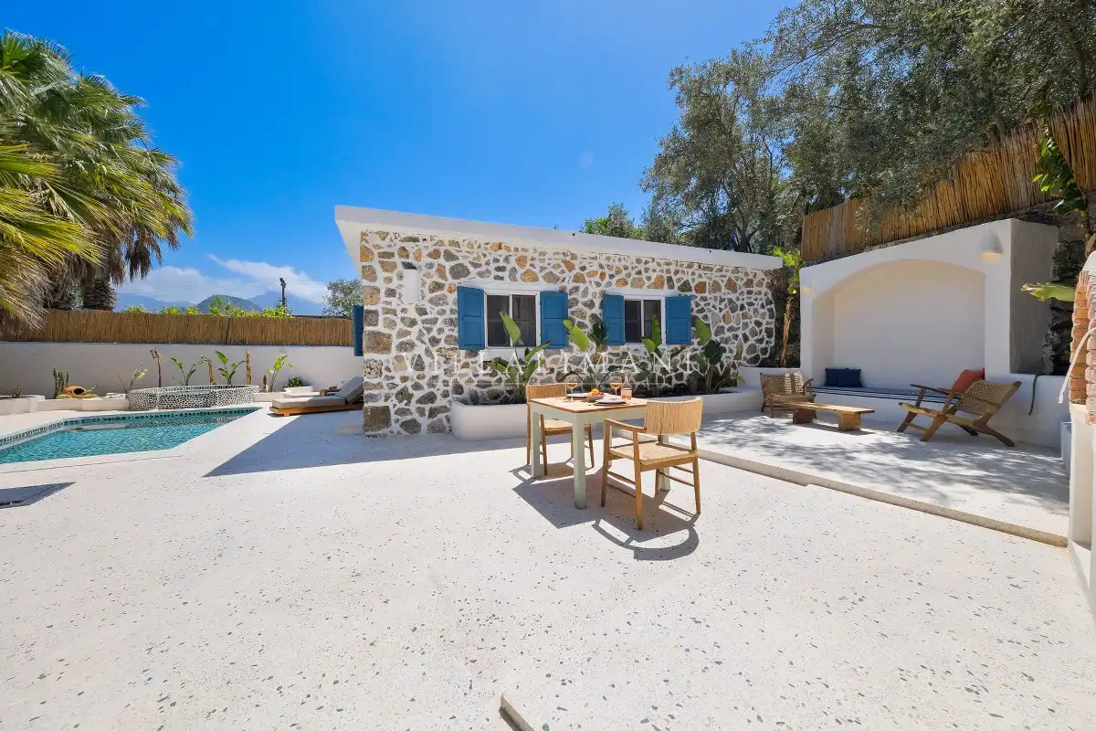 Fethiye Kayaköy'deki bu özel villada konaklayarak, tarihi ve doğal güzellikleri keşfederken aynı zamanda konforlu ve huzurlu bir tatil geçirebilirsiniz.