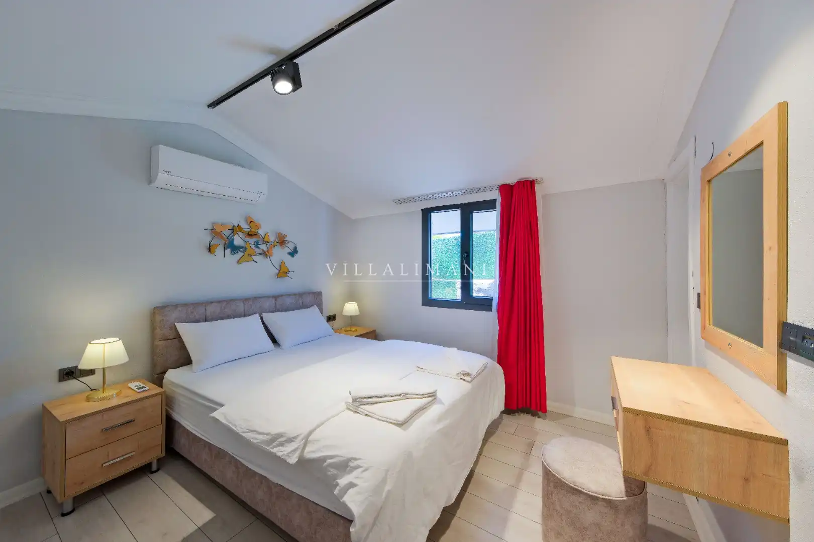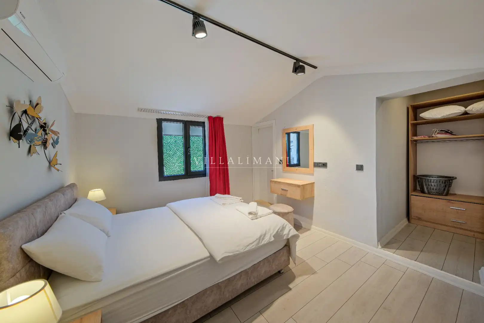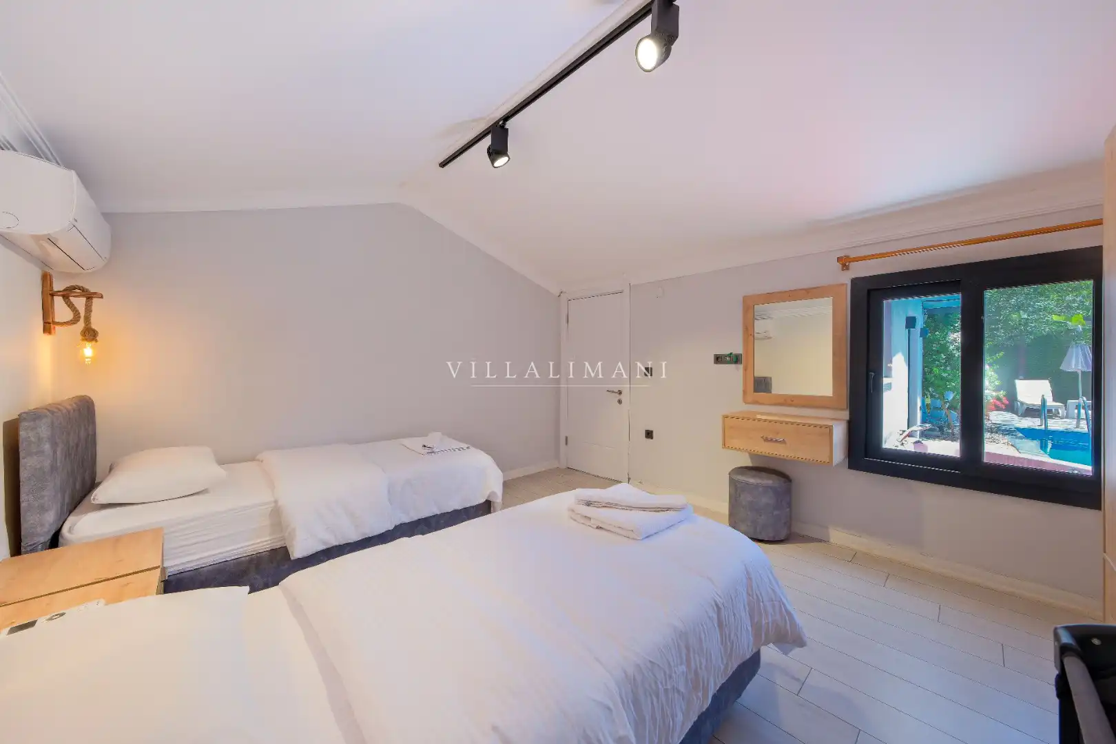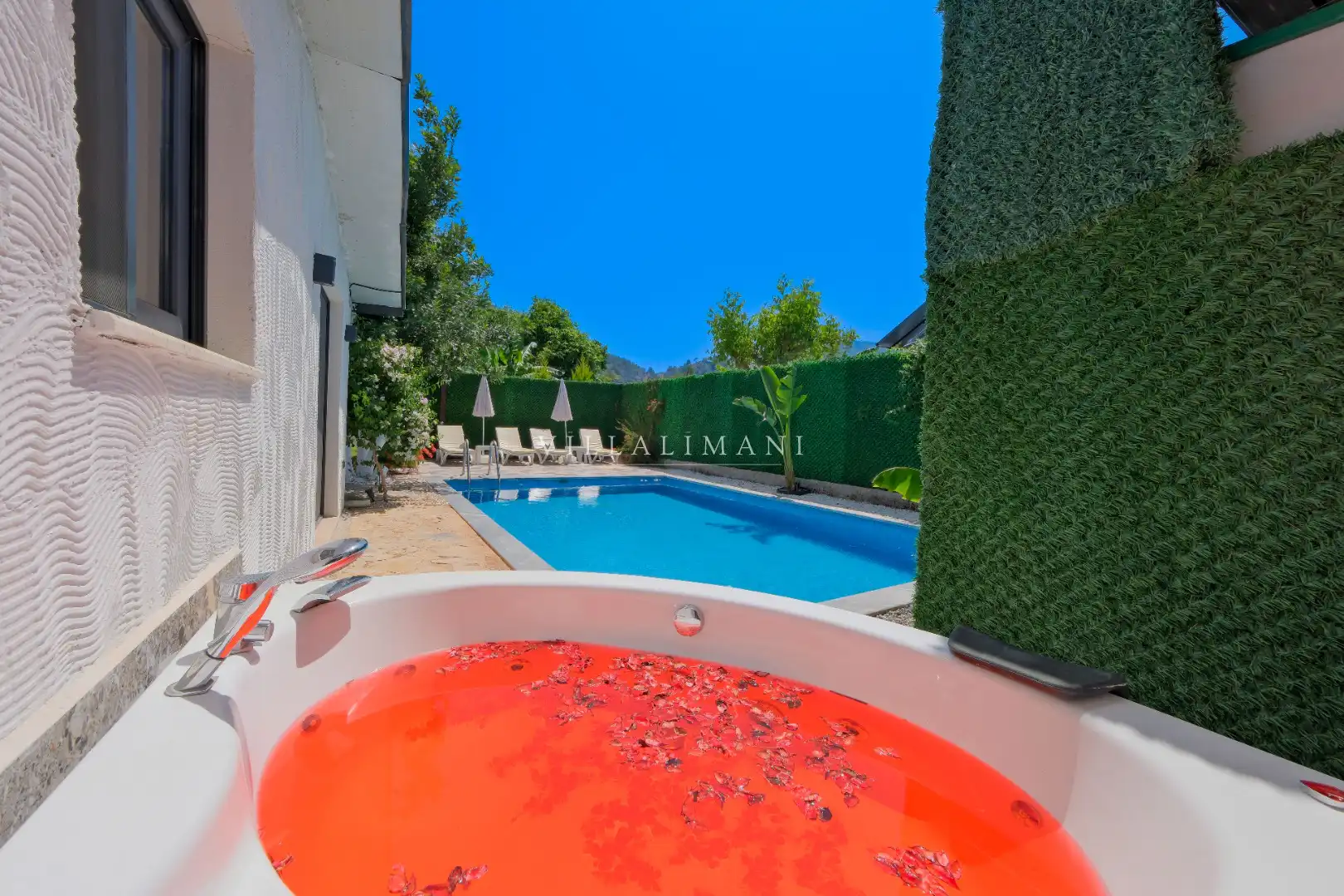 Fethiye Kayaköy’de bulunan villamız 2 yatak odası ile 4 kişilik konaklama kapasitesi sunmaktadır. Korunaklı havuz alanına ve açık hava jakuzisine sahip ayrıcalıklı bir villa tatili için tüm donanım ve konfor detaylarının düşünüldüğü villa balayı çiftlerinin ve çekirdek aileye sahip misafirlerimizin tercihleri arasındadır.
