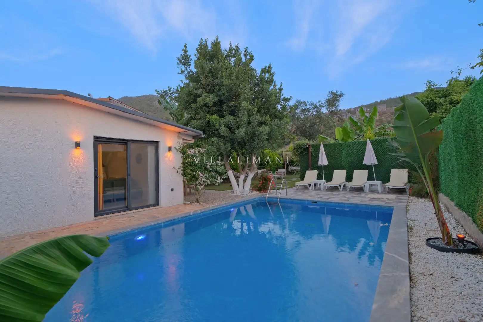 Fethiye Kayaköy'deki bu özel villada konaklayarak, tarihi ve doğal güzellikleri keşfederken aynı zamanda konforlu ve huzurlu bir tatil geçirebilirsiniz.