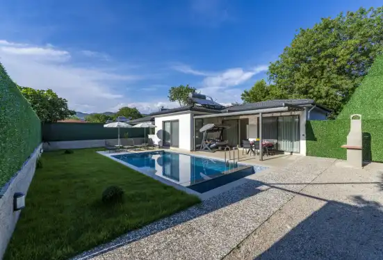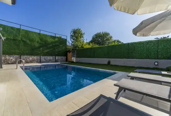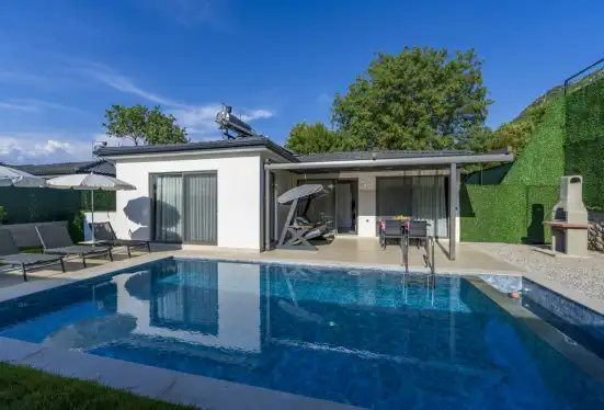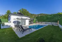 Fethiye'nin muhteşem doğasında şehir kargaşasından uzak bir tatil geçirmenizi sağlayacak olan villamızın havuz ve bahçe kısmında kapasiteye uygun oturma grubu, şezlong takımı, barbekü alanı; havuz terasına açılan, her ayrıntısı özenle tasarlanmış ferah bir oturma odası ve tam donanımlı açık mutfağı bulunmaktadır.