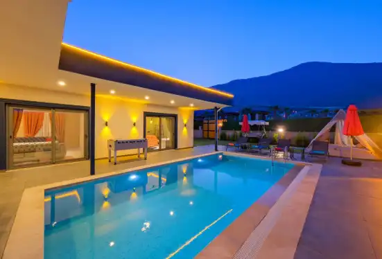Fethiye'deki bu lüks villada konaklayarak, plajlara ve turistik bölgelere kolayca ulaşabilir, Akdeniz'in serin sularında yüzme keyfi yaşayabilir ve unutulmaz bir tatil deneyimi yaşayabilirsiniz.