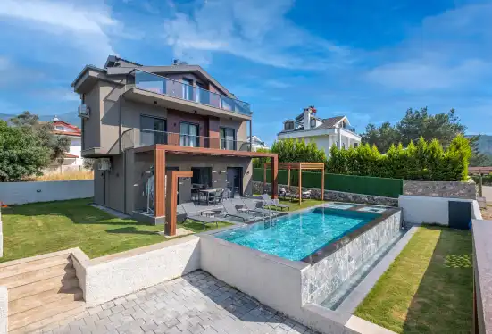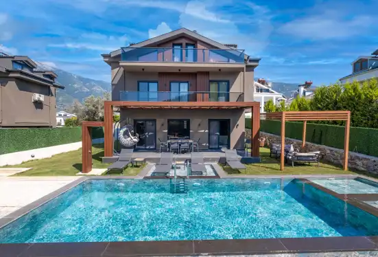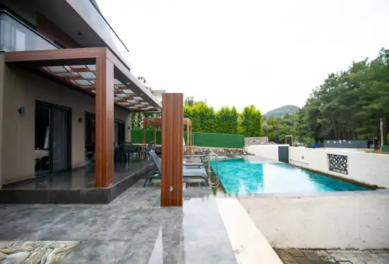 Fethiye'nin muhteşem doğasında şehir kargaşasından uzak bir tatil geçirmenizi sağlayacak olan villamızın havuz ve bahçe kısmında kapasiteye uygun oturma grubu, şezlong takımı, barbekü alanı; havuz terasına açılan, her ayrıntısı özenle tasarlanmış ferah bir oturma odası ve tam donanımlı açık mutfağı bulunmaktadır.