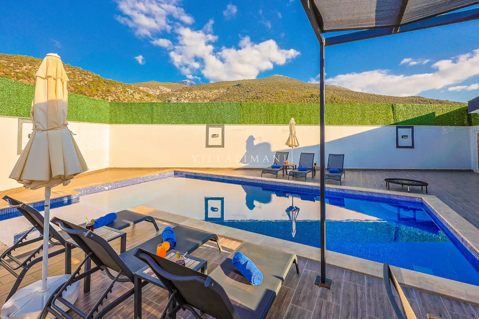Kalkan Çavdır mevkiinde bulunan villamız 3 yatak odasıyla 6 kişilik konaklama kapasitesi sunmaktadır. Korunaklı havuz alanına sahip ayrıcalıklı bir villa tatili için tüm donanım ve konfor detaylarının düşünüldüğü villa balayı ve çekirdek ailelerimizin tercihleri arasındadır.
