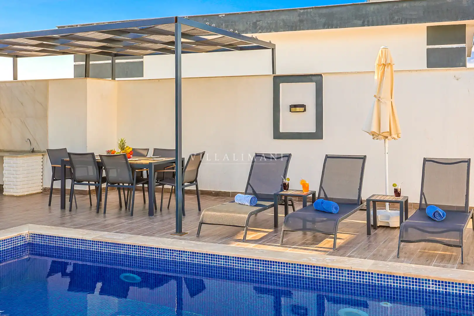 Villa iki kattan oluşmakta ve havuz terası üst katta yer almaktadır.