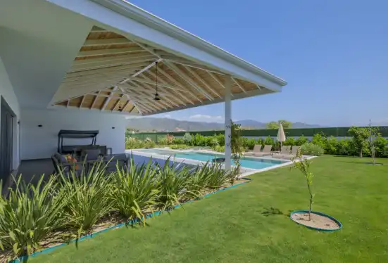 Fethiye'nin muhteşem doğasında şehir kargaşasından uzak bir tatil geçirmenizi sağlayacak olan villamızın havuz ve bahçe kısmında kapasiteye uygun oturma grubu, şezlong takımı, barbekü alanı mevcuttur. ayrıcahavuz terasına açılan, her ayrıntısı özenle tasarlanmış ferah bir oturma odası ve tam donanımlı açık mutfağı bulunmaktadır.