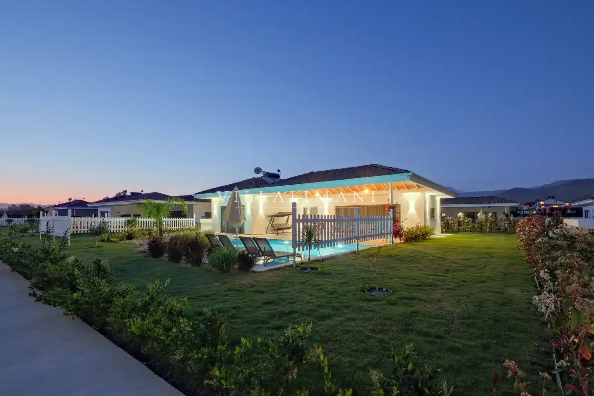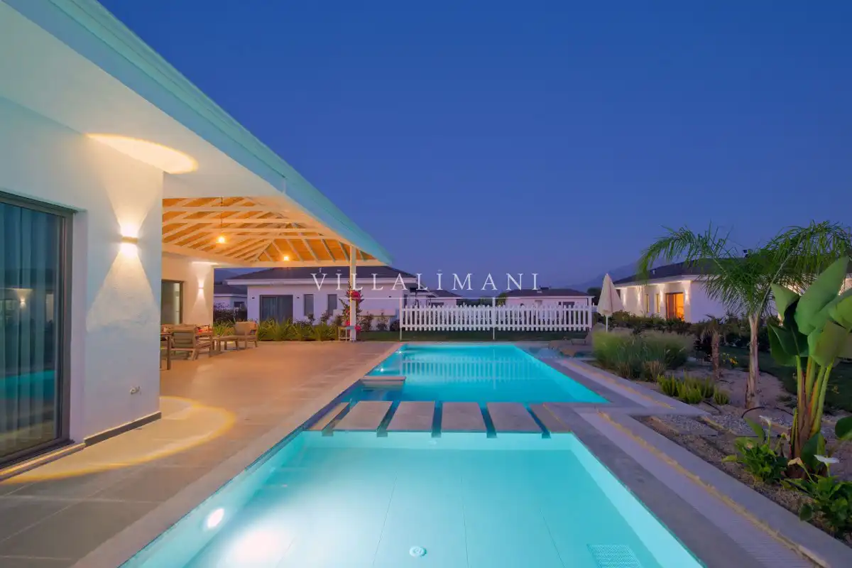 NOT : Bölgede aynı özelliklere sahip toplam 19 adet villa bulunmaktadır. Her villa özel havuzlu olarak hizmet vermektedir. Aynı iç ve dış dekorasyona sahip villamız için ortak görseller kullanılmıştır.