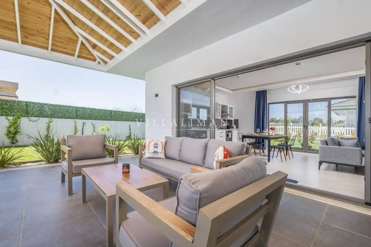 Fethiye'nin muhteşem doğasında şehir kargaşasından uzak bir tatil geçirmenizi sağlayacak olan villamızın havuz ve bahçe kısmında kapasiteye uygun oturma grubu, şezlong takımı, barbekü alanı mevcuttur. ayrıcahavuz terasına açılan, her ayrıntısı özenle tasarlanmış ferah bir oturma odası ve tam donanımlı açık mutfağı bulunmaktadır.