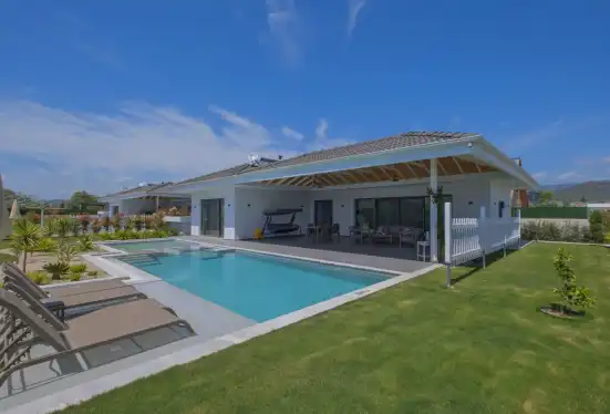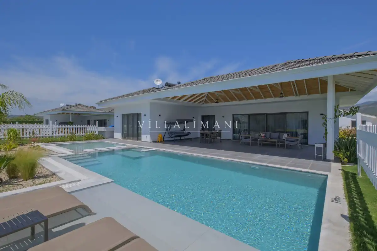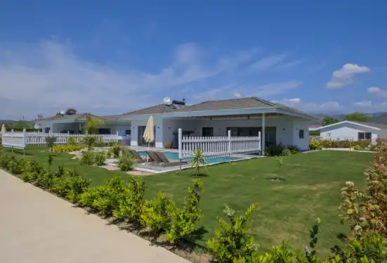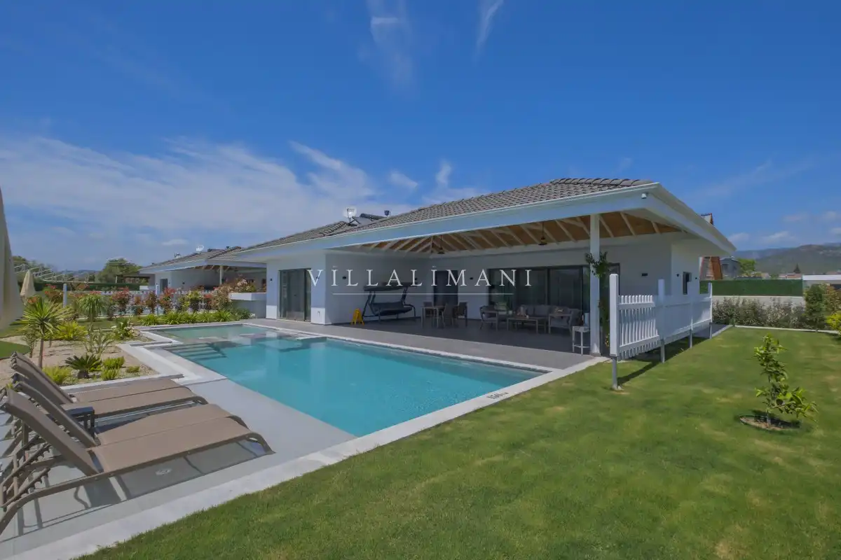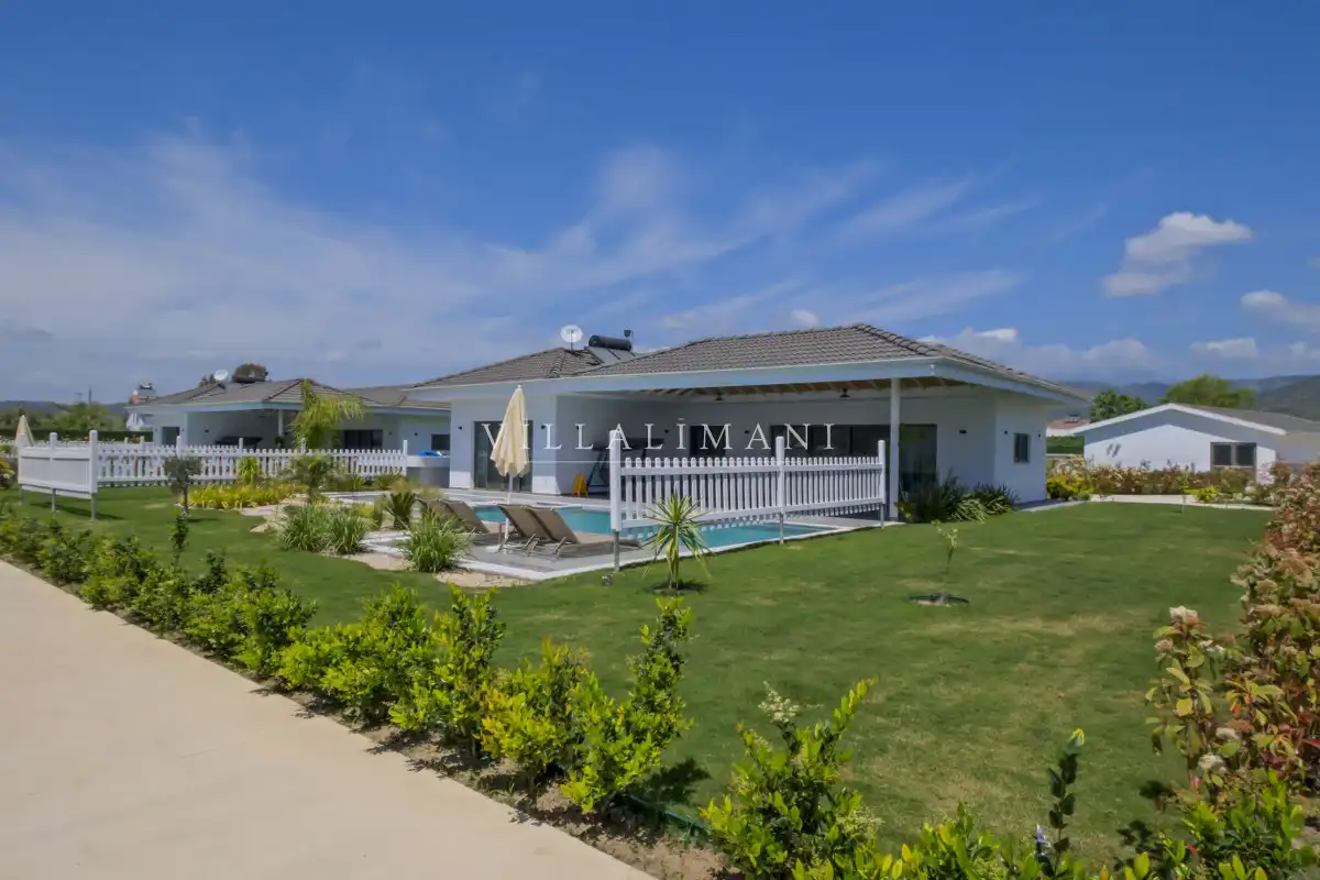 NOT : Bölgede aynı özelliklere sahip toplam 19 adet villa bulunmaktadır. Her villa özel havuzlu olarak hizmet vermektedir. Aynı iç ve dış dekorasyona sahip villamız için ortak görseller kullanılmıştır.