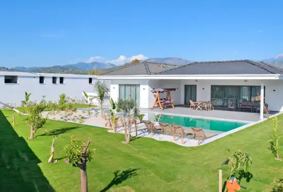 NOT : Bölgede aynı özelliklere sahip toplam 19 adet villa bulunmaktadır. Her villa özel havuzlu olarak hizmet vermektedir. Aynı iç ve dış dekorasyona sahip villamız için ortak görseller kullanılmıştır.