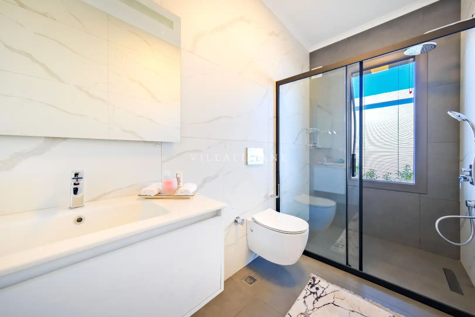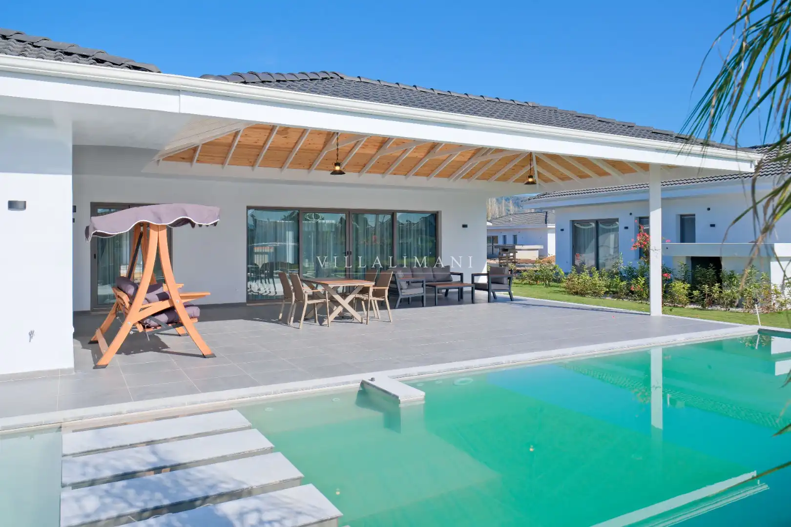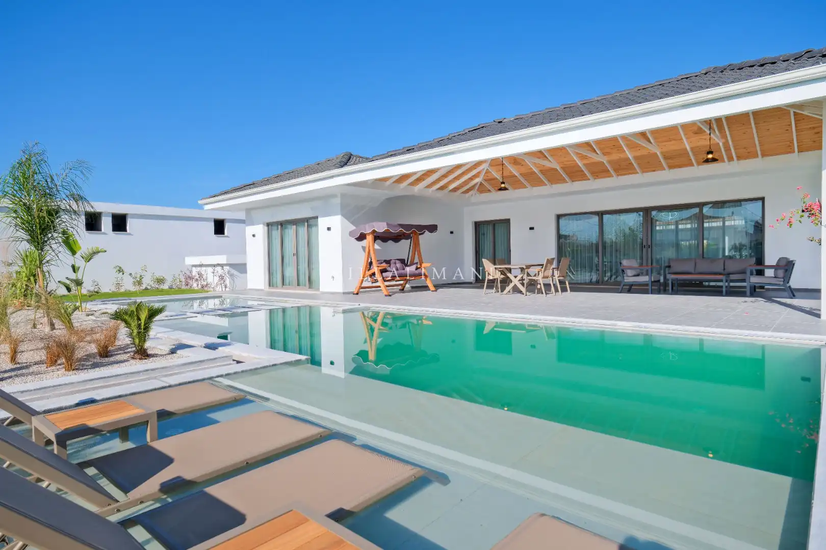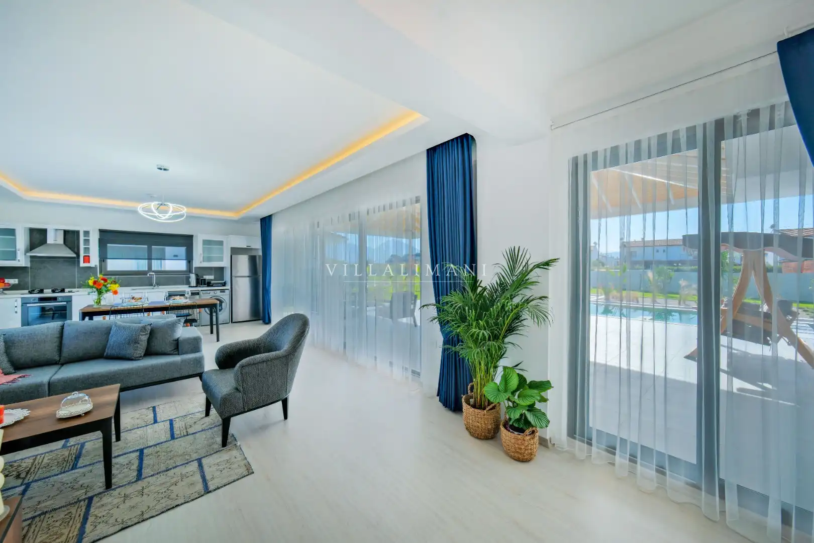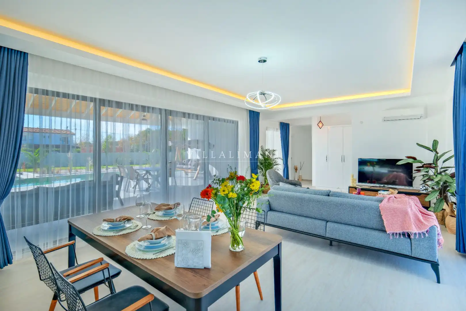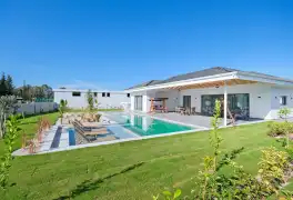 NOT : Bölgede aynı özelliklere sahip toplam 19 adet villa bulunmaktadır. Her villa özel havuzlu olarak hizmet vermektedir. Aynı iç ve dış dekorasyona sahip villamız için ortak görseller kullanılmıştır.