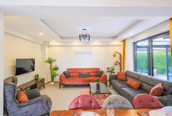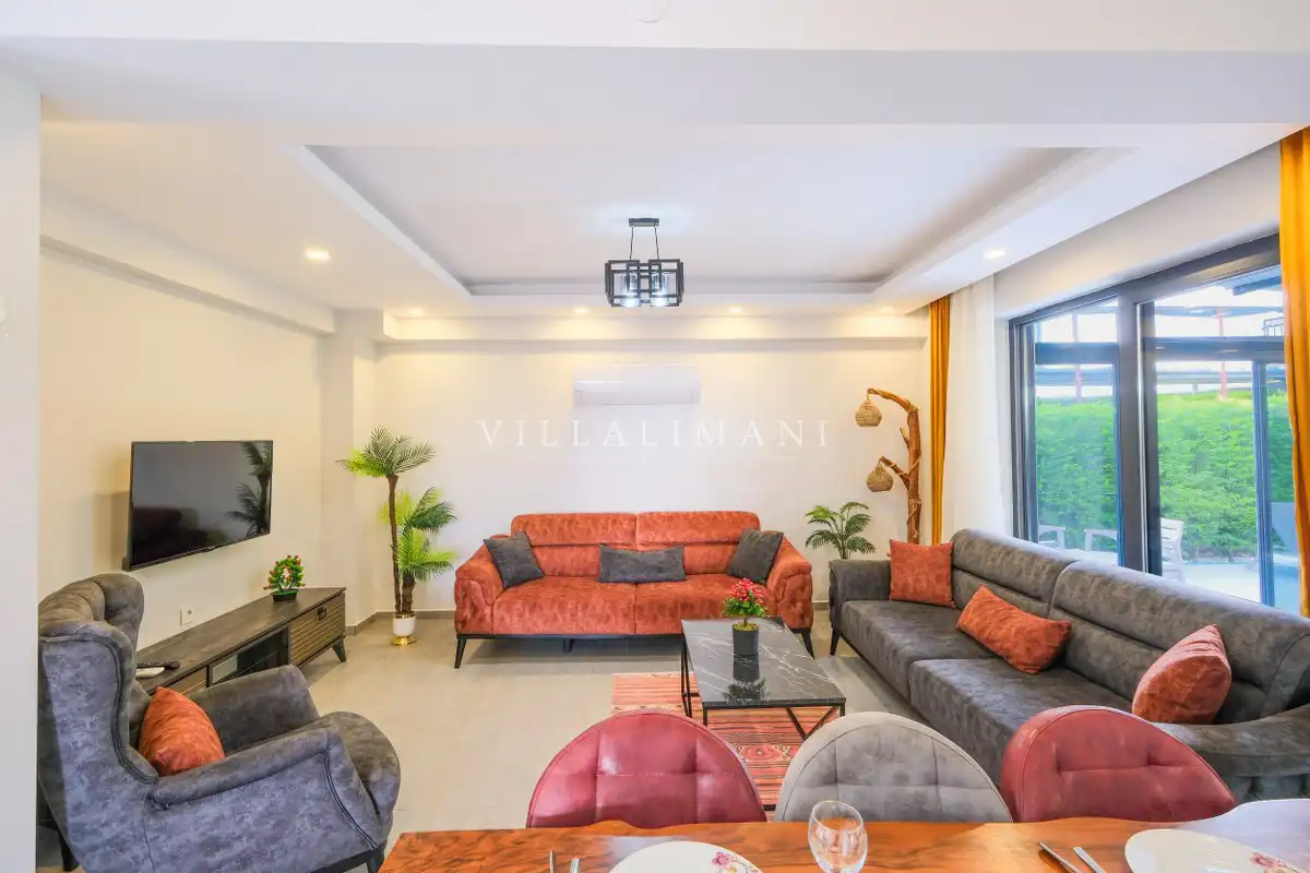 Fethiye'nin muhteşem doğasında şehir kargaşasından uzak bir tatil geçirmenizi sağlayacak olan villamızın havuz ve bahçe kısmında kapasiteye uygun oturma grubu, şezlong takımı, barbekü alanı mevcuttur. Ayrıca havuz terasına açılan, her ayrıntısı özenle tasarlanmış ferah bir oturma odası ve tam donanımlı açık mutfağı bulunmaktadır.