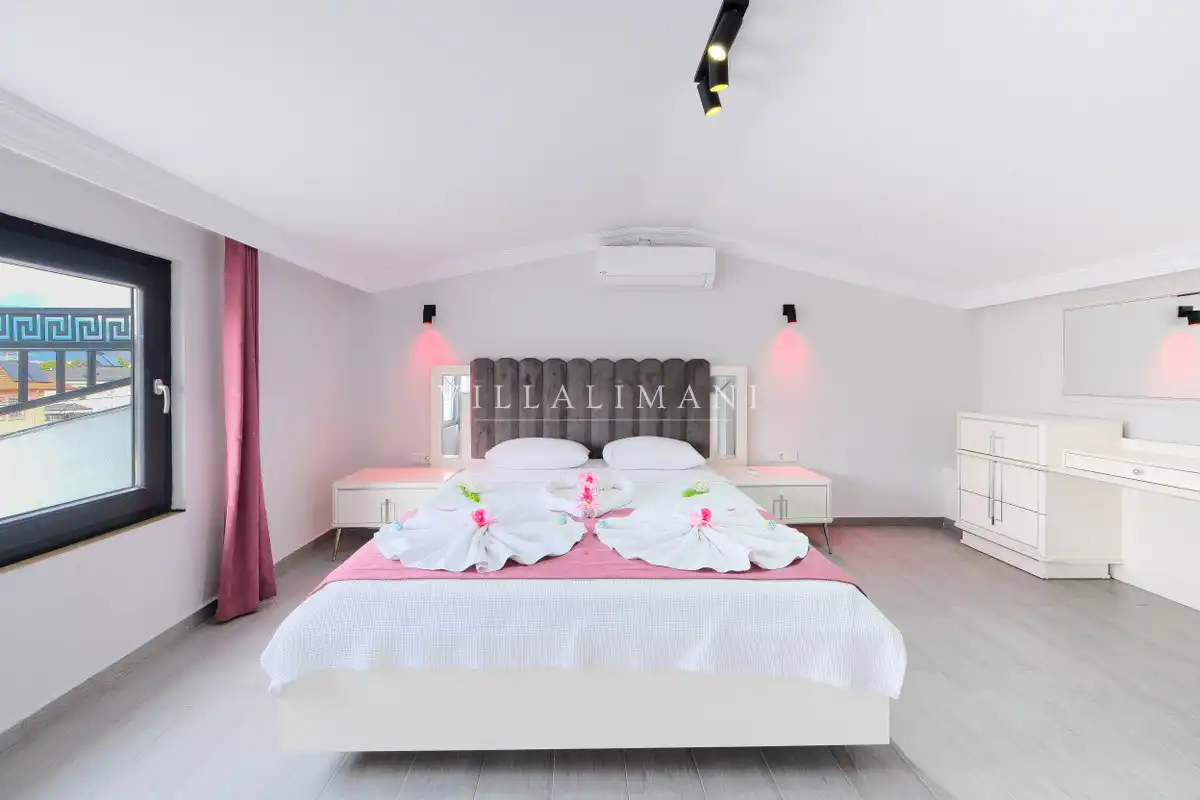 Muğla Fethiye’de yer alan villamız Çalıca bölgesinde bulunmaktadır. Villamız 3 yatak odası ile 6 kişilik konaklama kapasitesi sunmaktadır. Korunaklı havuz alanına sahip ayrıcalıklı bir villa tatili için tüm donanım ve konfor detaylarının düşünüldüğü kalabalık arkadaş grupları ve geniş aileye sahip misafirlerimizin tercihleri arasındadır.