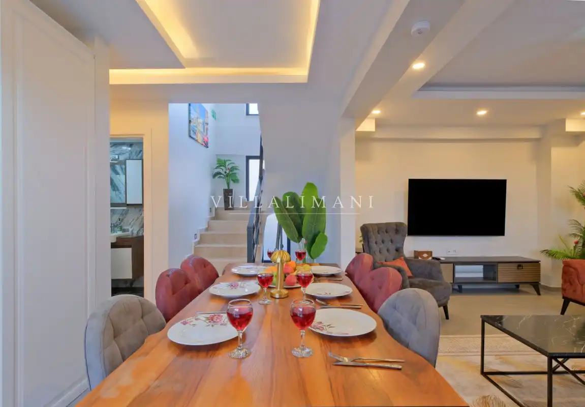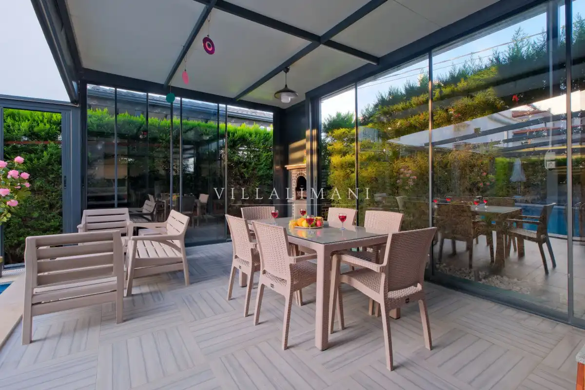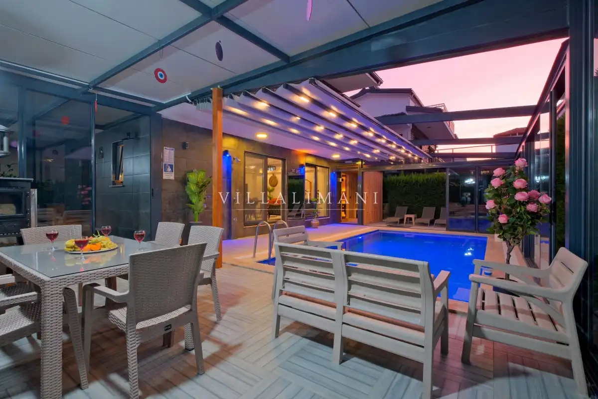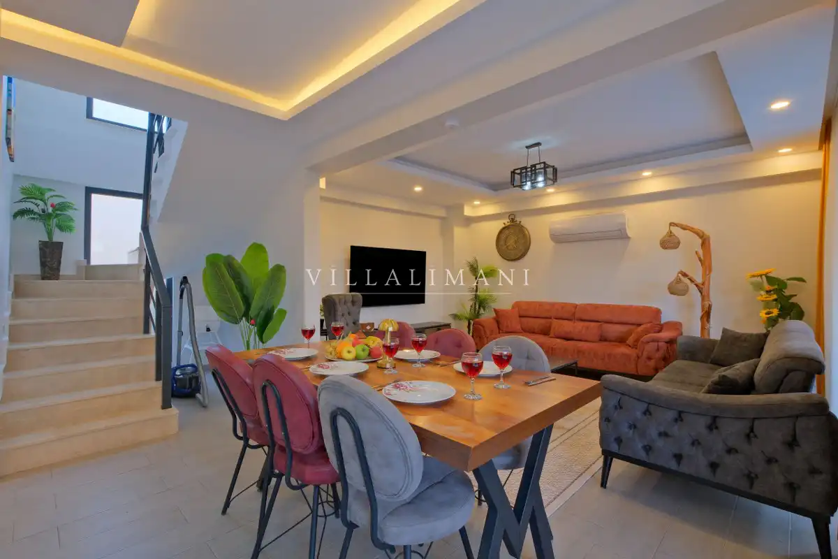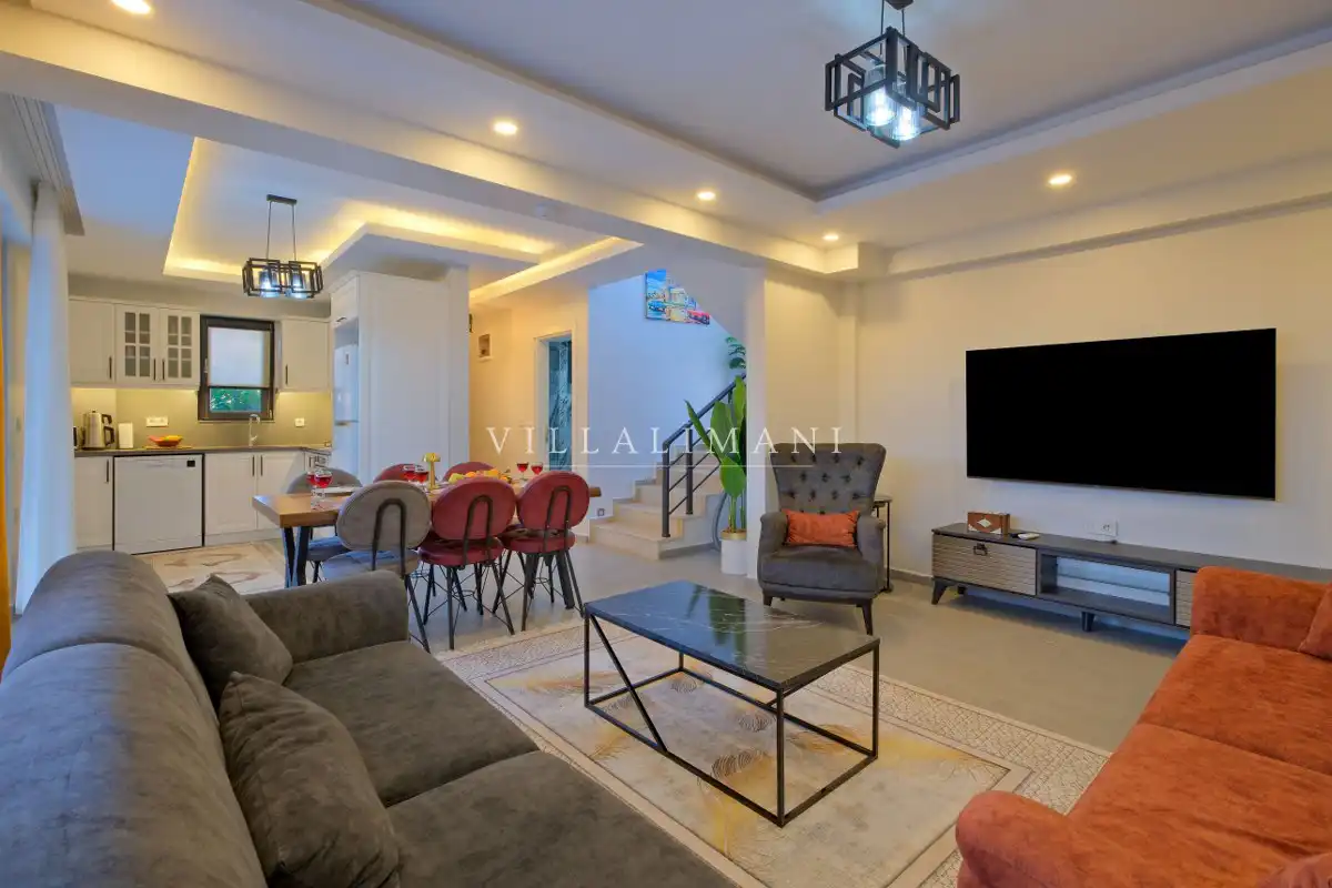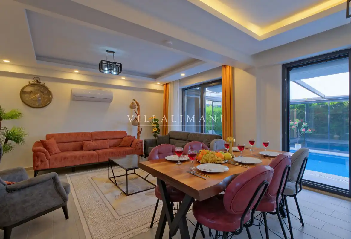 Fethiye'nin muhteşem doğasında şehir kargaşasından uzak bir tatil geçirmenizi sağlayacak olan villamızın havuz ve bahçe kısmında kapasiteye uygun oturma grubu, şezlong takımı, barbekü alanı mevcuttur. Ayrıca havuz terasına açılan, her ayrıntısı özenle tasarlanmış ferah bir oturma odası ve tam donanımlı açık mutfağı bulunmaktadır.