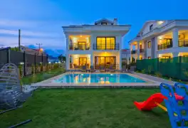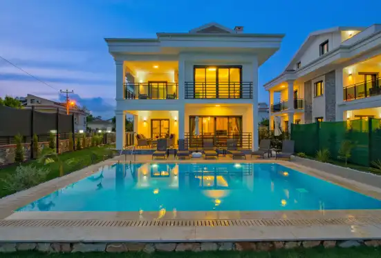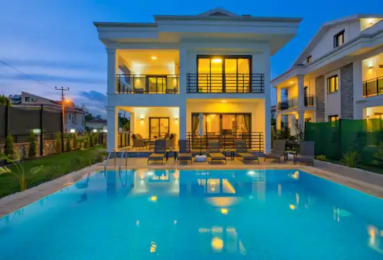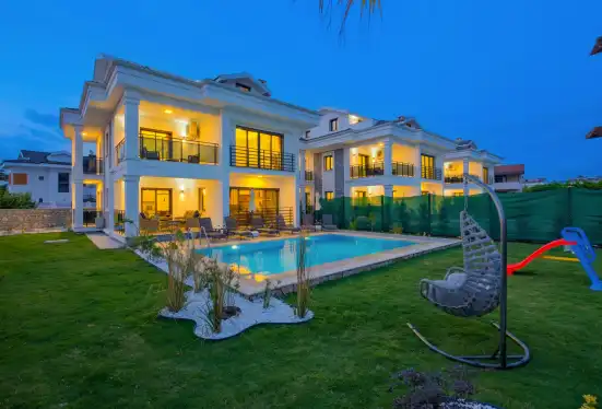 Fethiye'nin muhteşem doğasında şehir kargaşasından uzak bir tatil geçirmenizi sağlayacak olan villamızın havuz ve bahçe kısmında kapasiteye uygun oturma grubu, şezlong takımı, barbekü alanı, çocuk oyun parkı mevcuttur. Ayrıca havuz terasına açılan, her ayrıntısı özenle tasarlanmış ferah bir oturma odası ve tam donanımlı açık mutfağı bulunmaktadır.