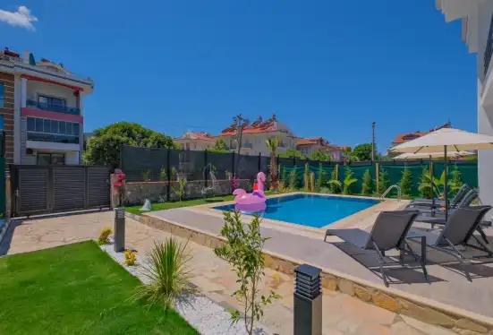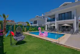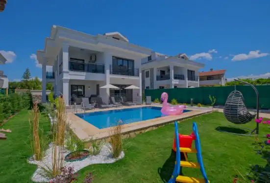 Fethiye'nin muhteşem doğasında şehir kargaşasından uzak bir tatil geçirmenizi sağlayacak olan villamızın havuz ve bahçe kısmında kapasiteye uygun oturma grubu, şezlong takımı, barbekü alanı, çocuk oyun parkı mevcuttur. Ayrıca havuz terasına açılan, her ayrıntısı özenle tasarlanmış ferah bir oturma odası ve tam donanımlı açık mutfağı bulunmaktadır.